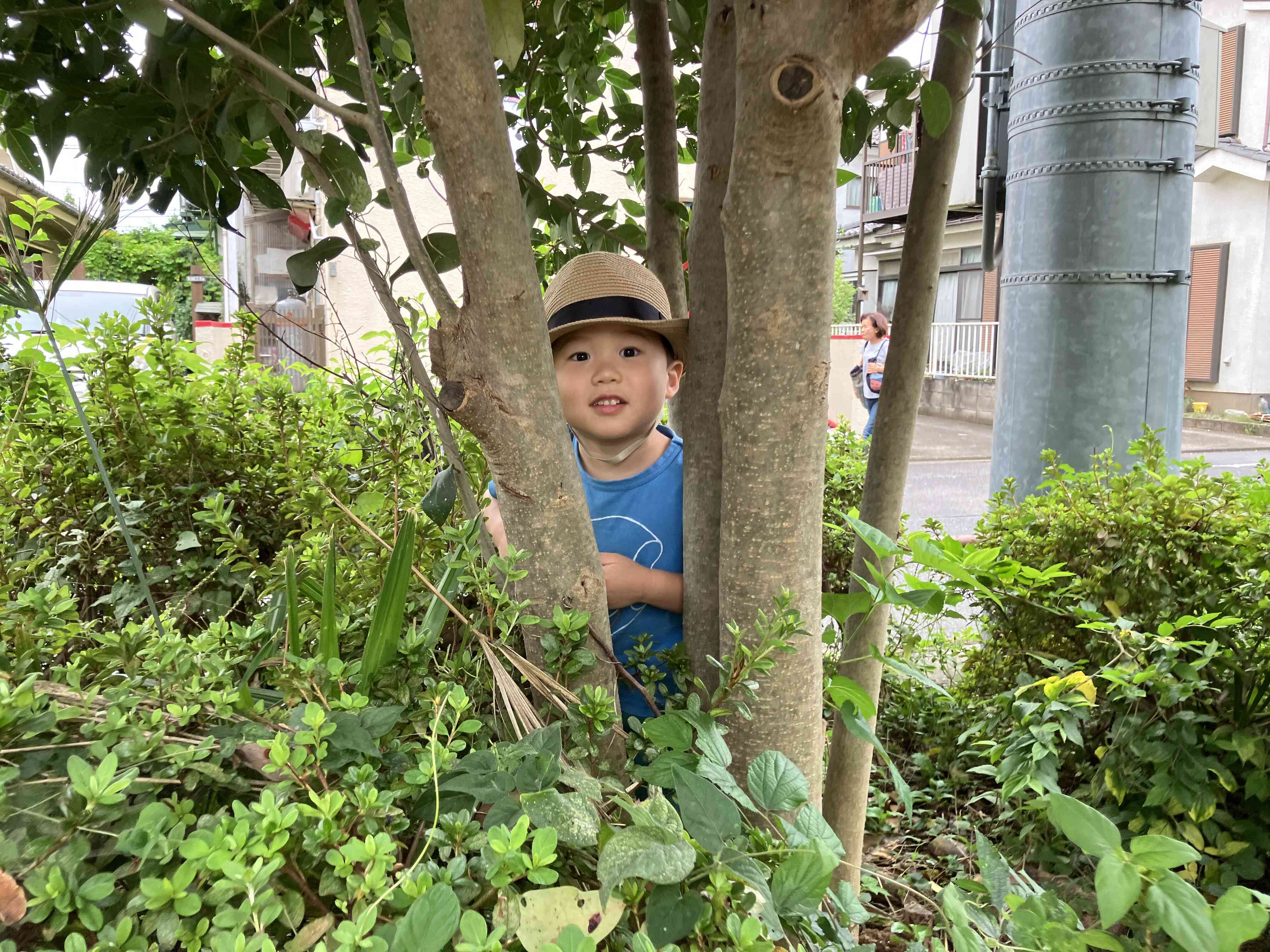 かくれんぼ中の2歳児さん。「鬼はどこかなー?」