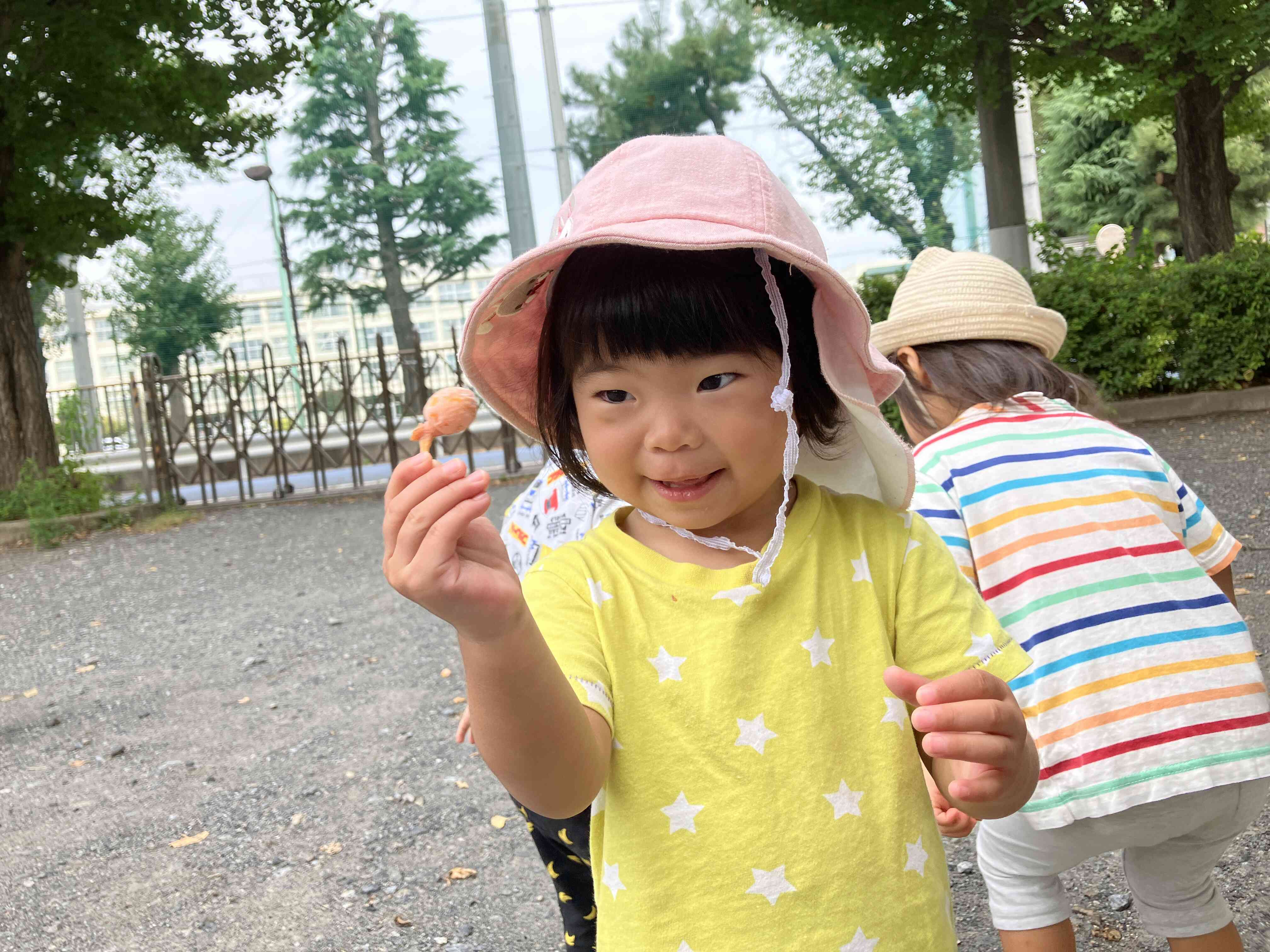 いいものみーつけた♪銀杏を見つけた1歳児さん。嬉しそうに先生に見せてくれました。