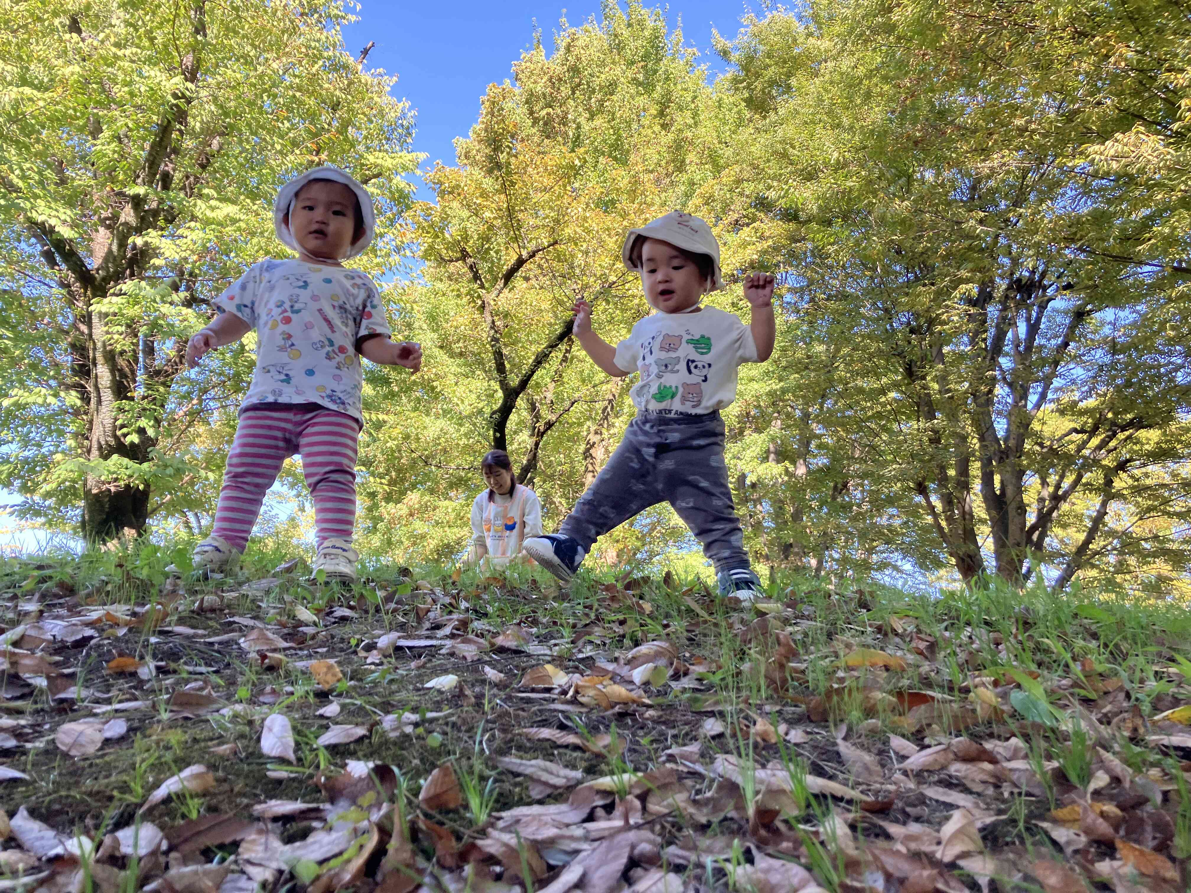 • 公園の坂道をおっとっと!上手にバランスを取りながら上り下りを楽しんでいます。
