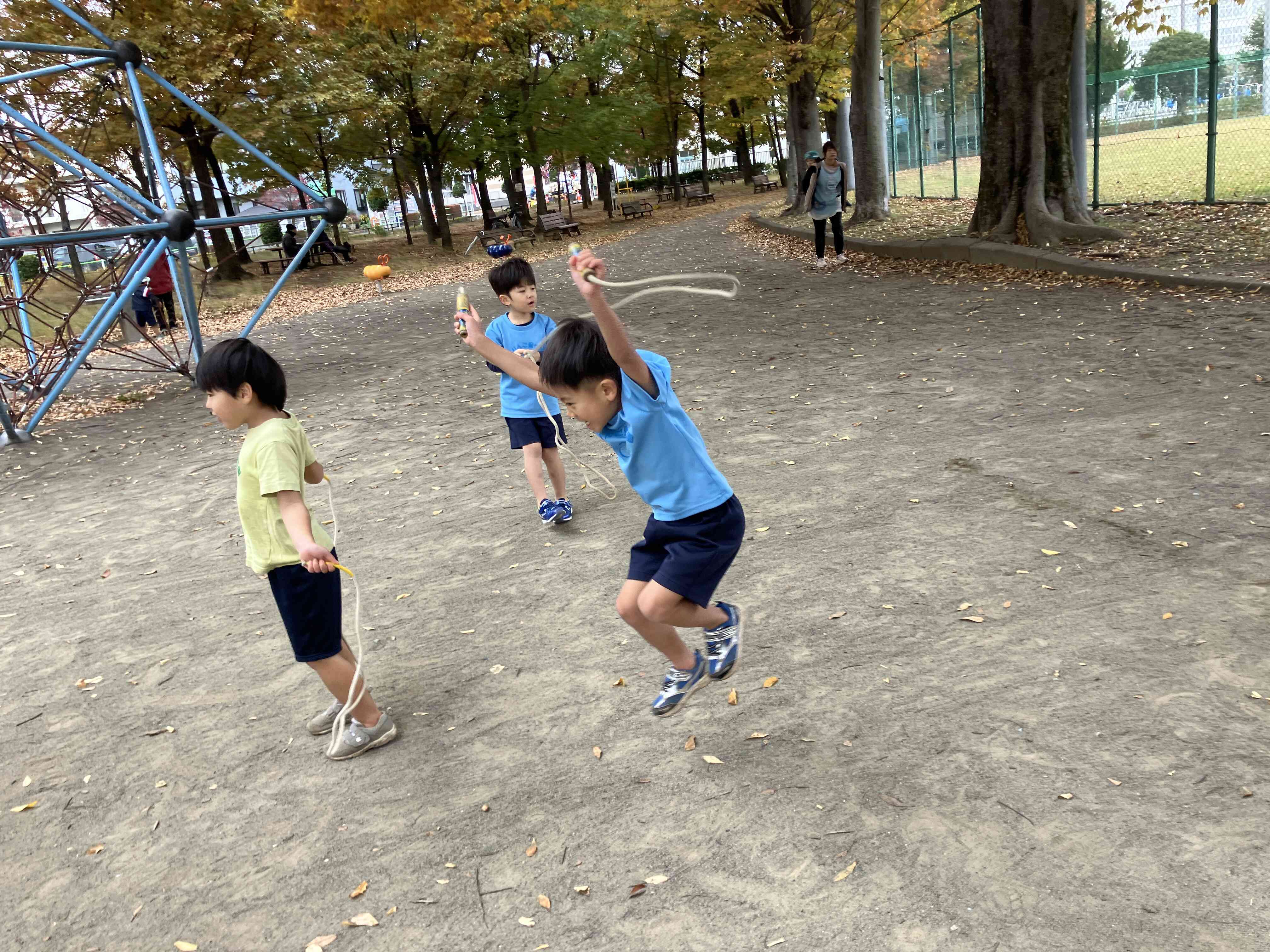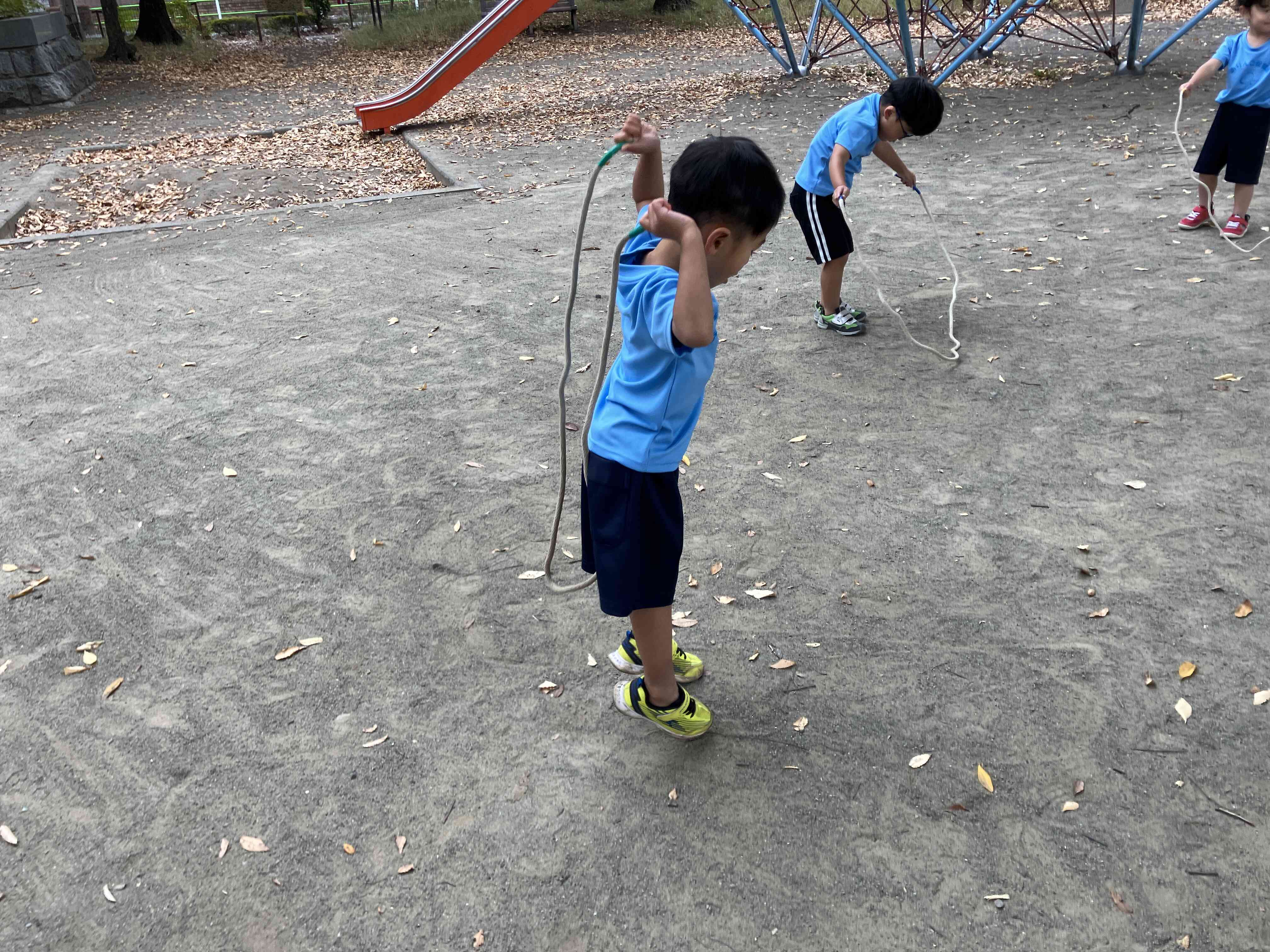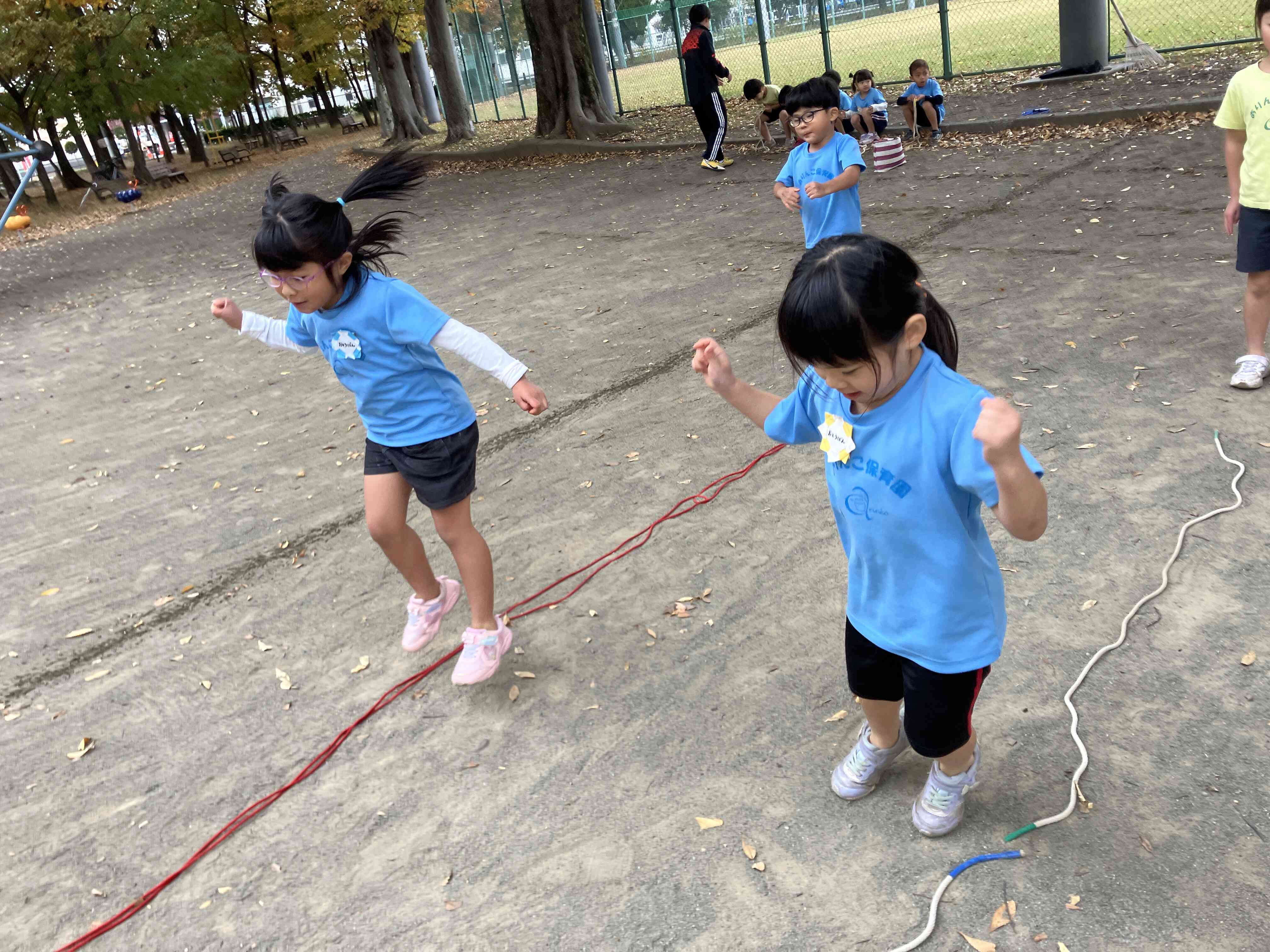 縄跳びをしました。4歳児さんは1回跳びがスムーズに出来るようになりました♪