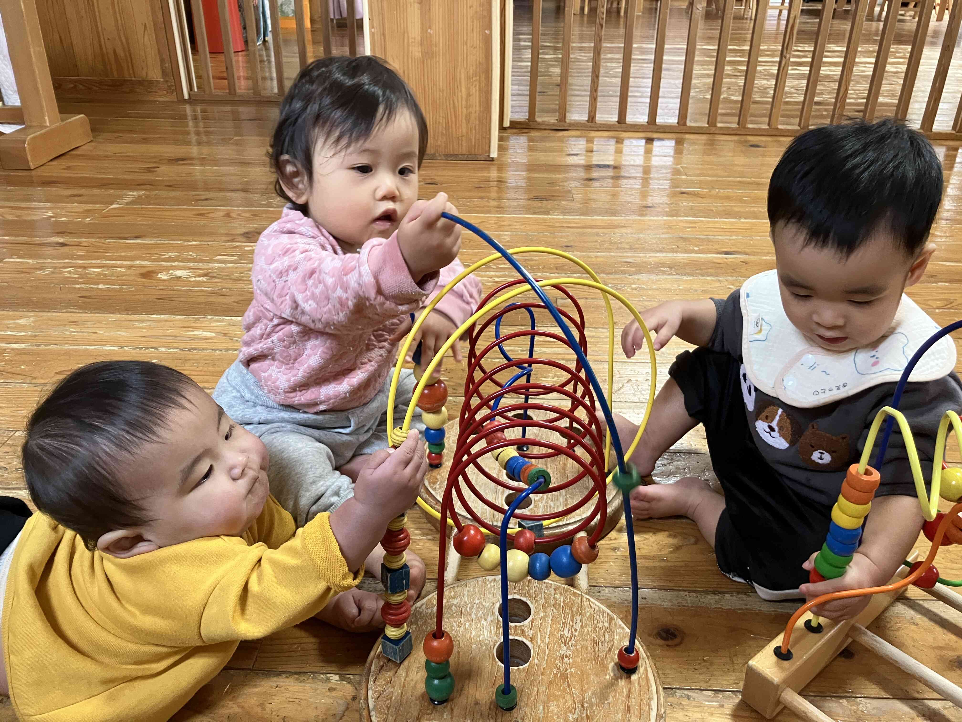 0歳児で1番小さなお友達もみんなと一緒に遊ぶようになりました♪