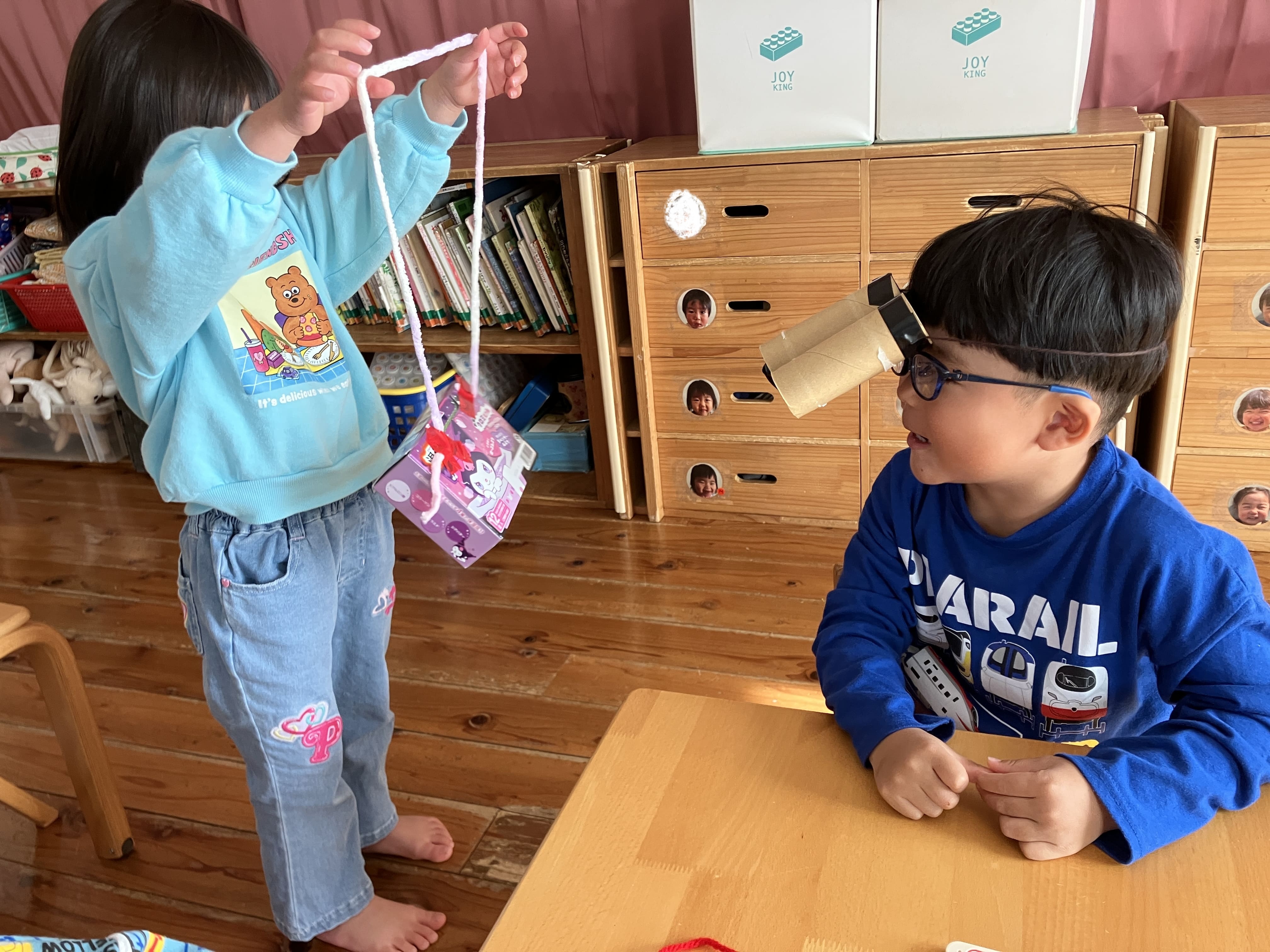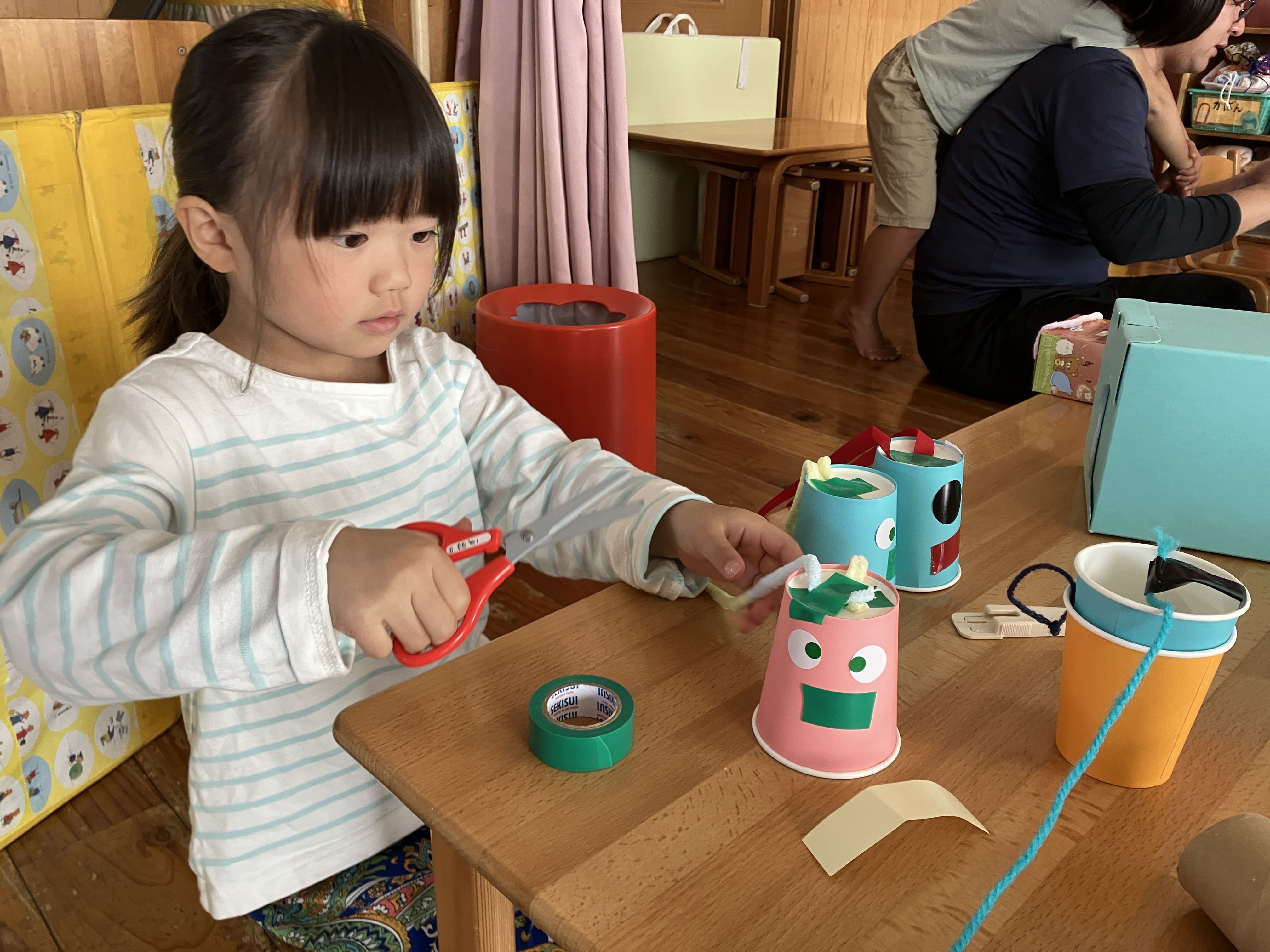 • 3,4歳児さんは廃材工作をしました♬ 紙コップでかわいい人形を作っています😊