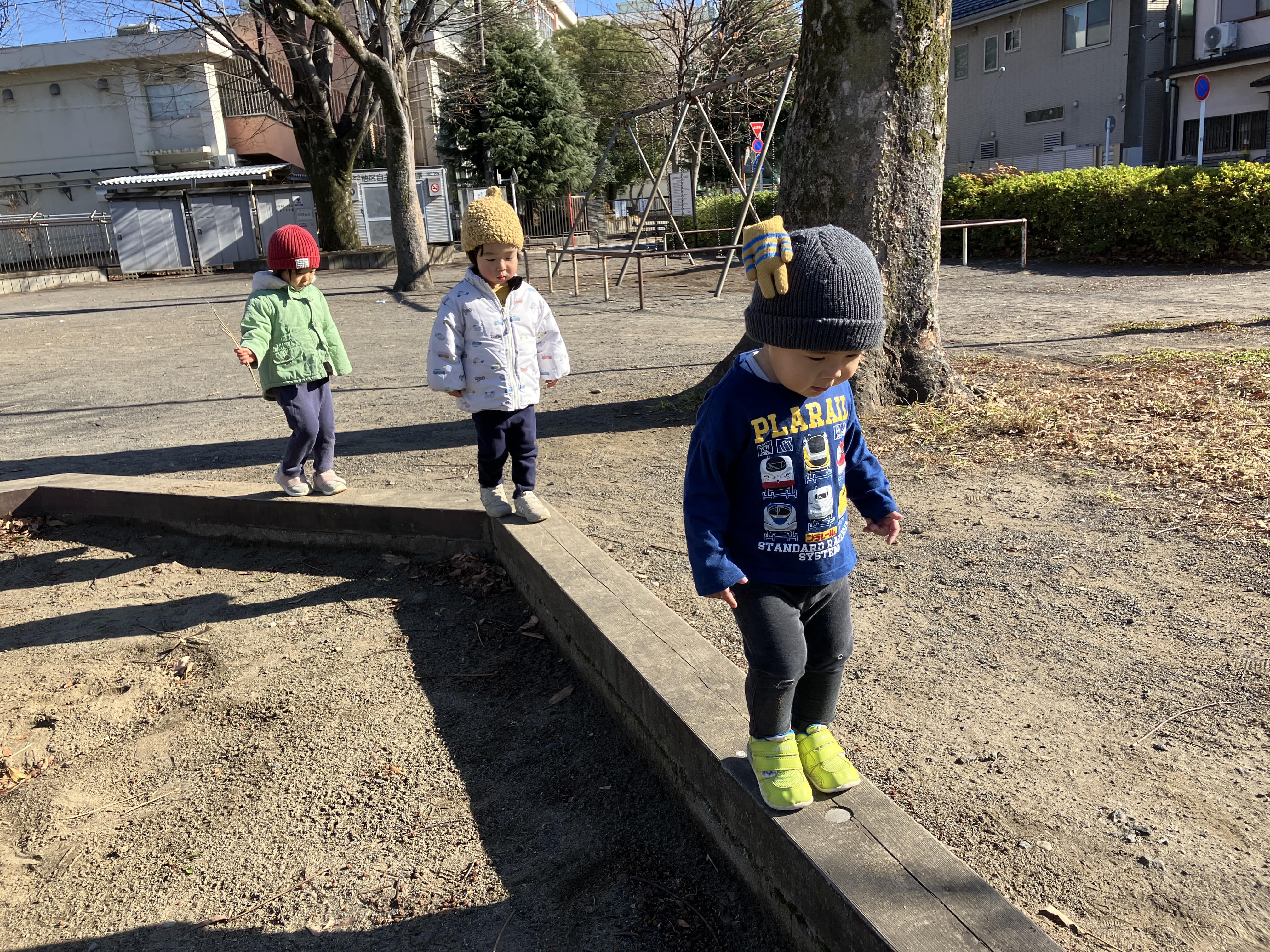 • 1歳児さんも公園へ♬ 一本橋渡りに挑戦!