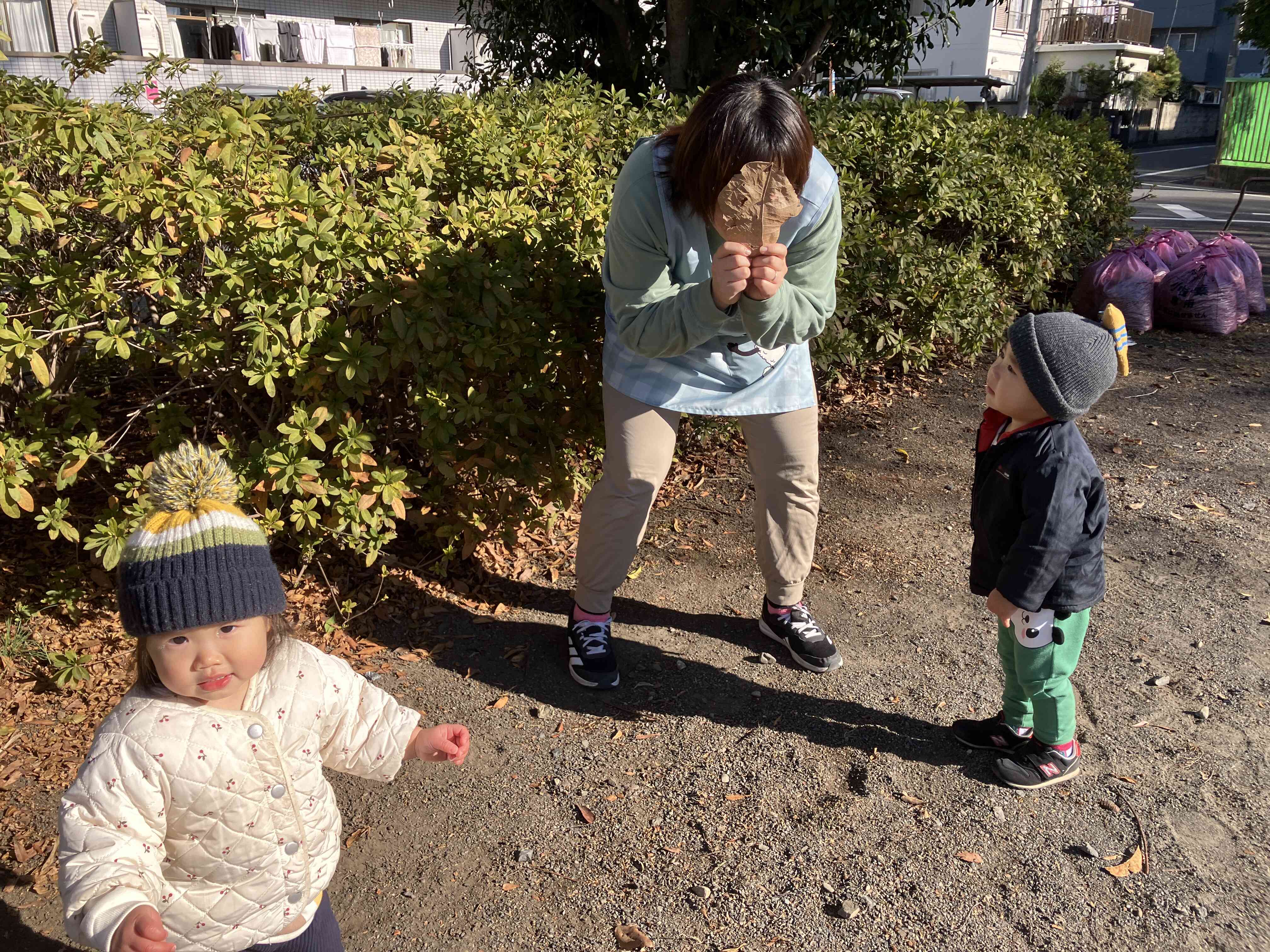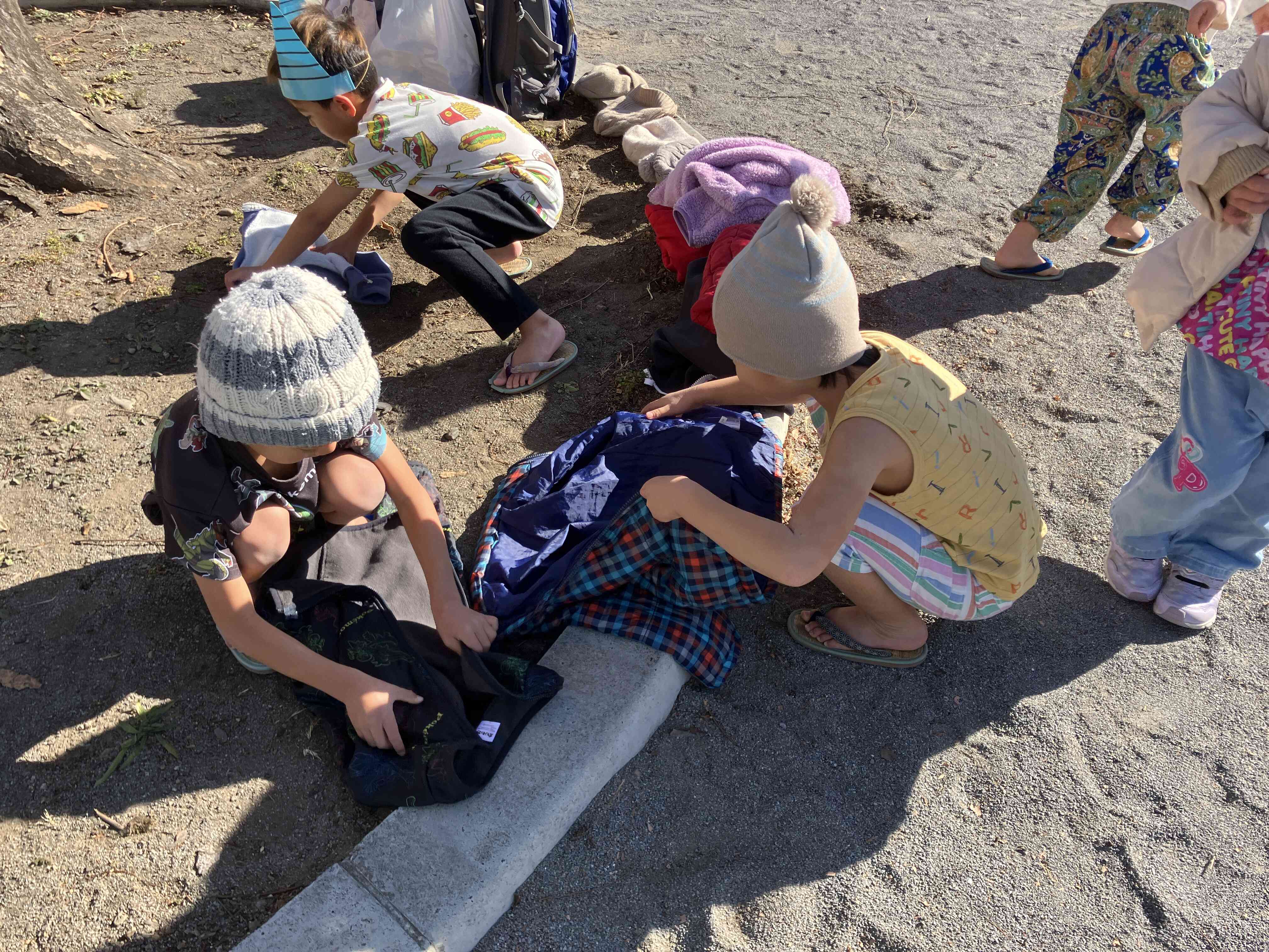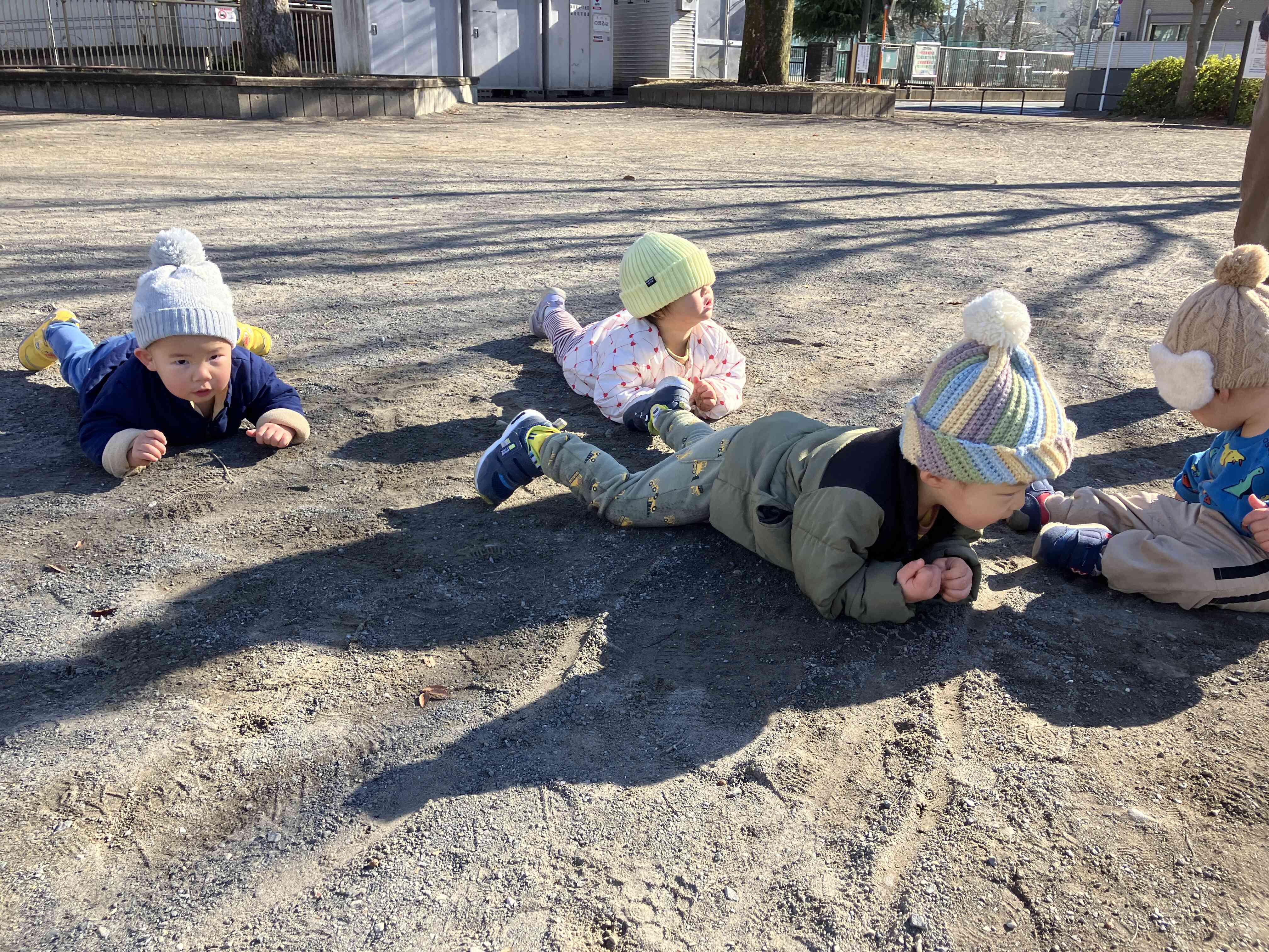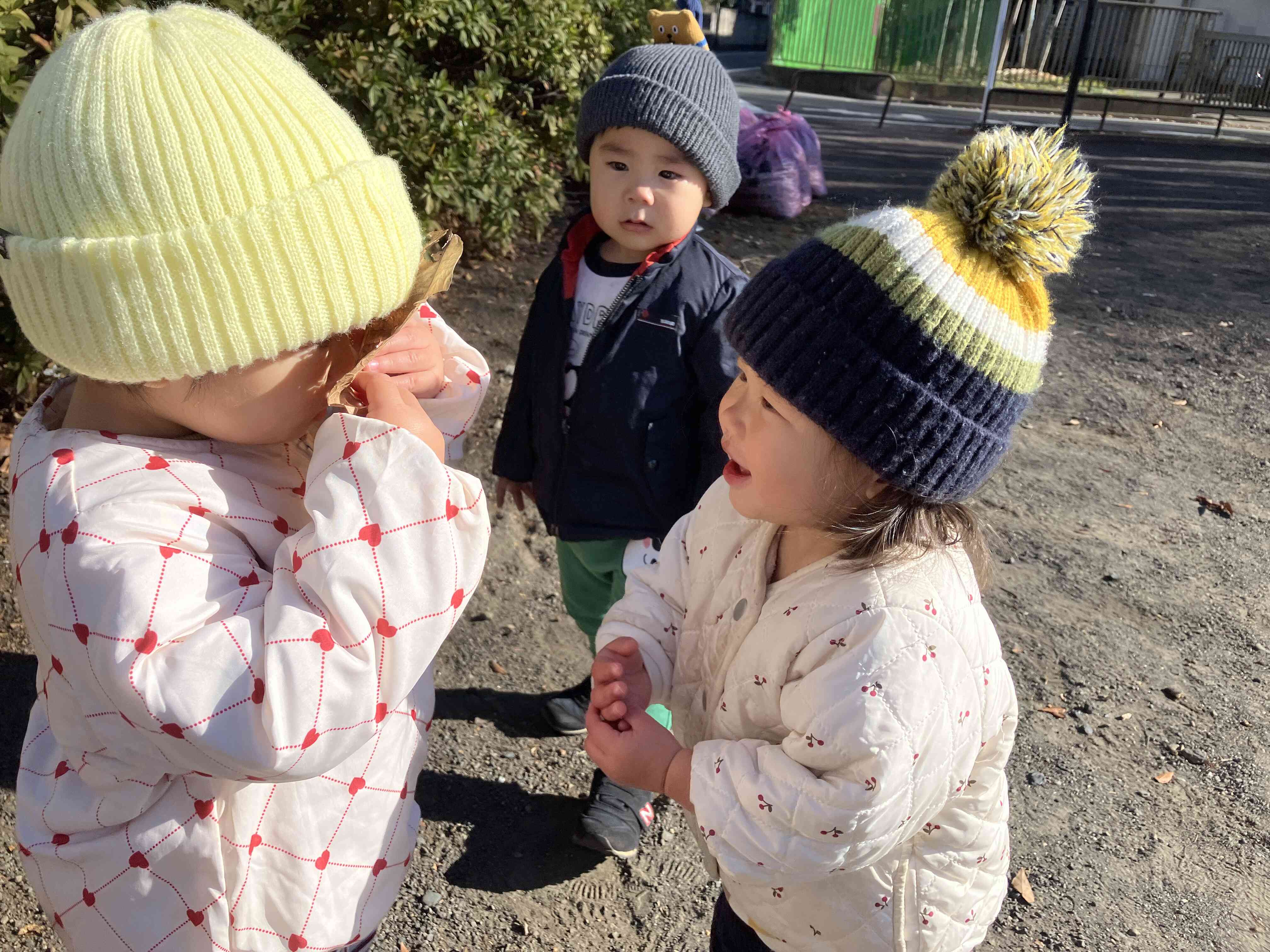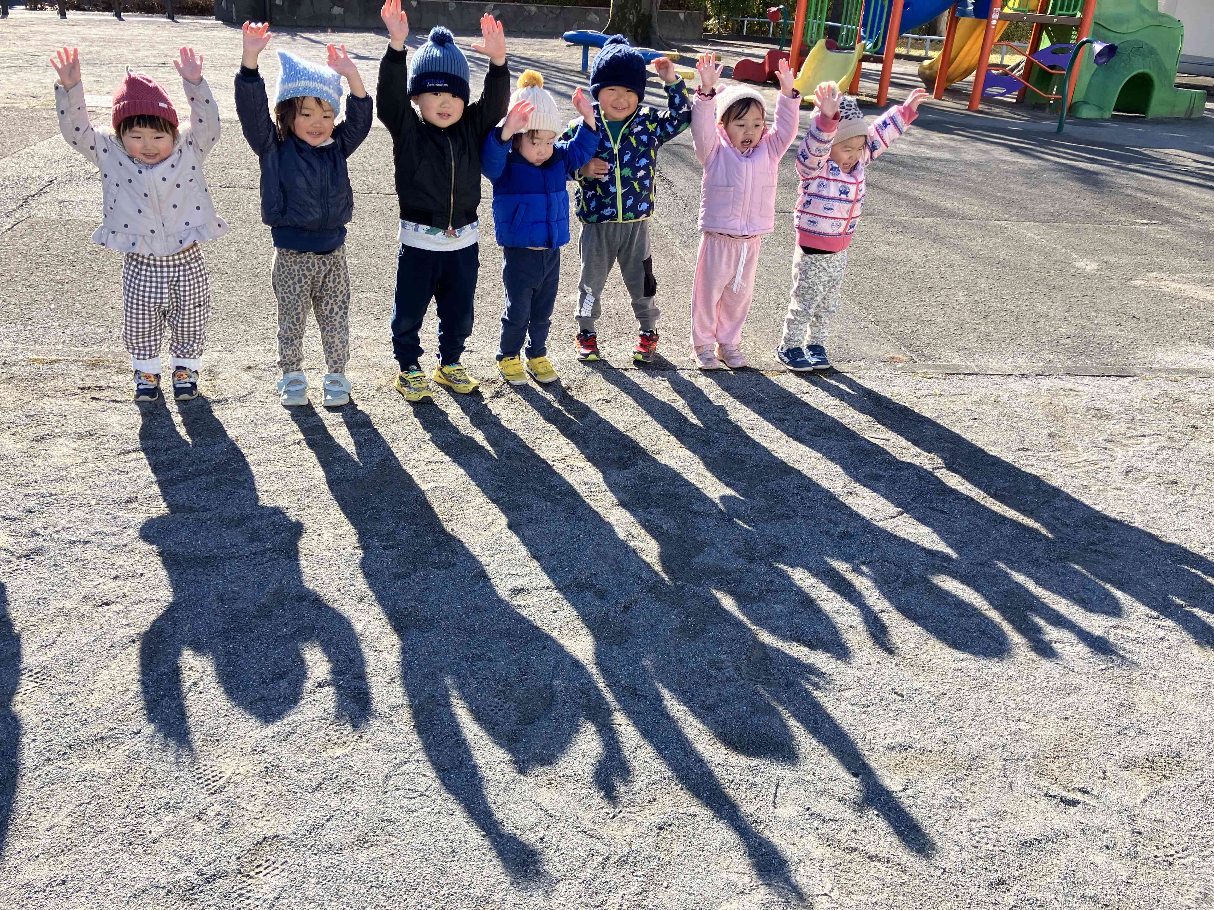 たくさん走り回って「暑ーい!」と上着を脱いでいます。寒さに負けないたくましい子ども達です。