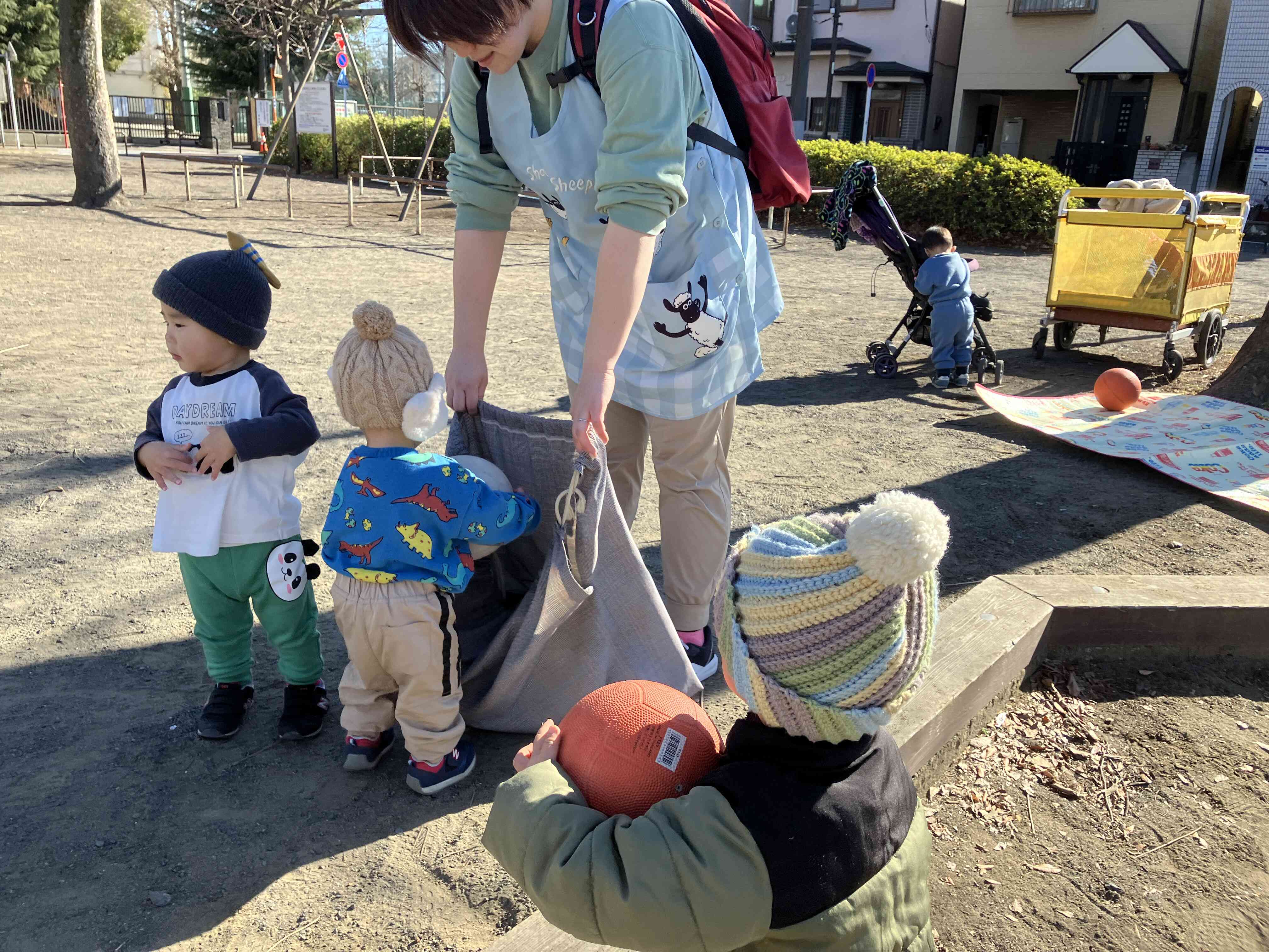 使った後はお片付け♪0歳児さんも上手にお片付けが出来ます!