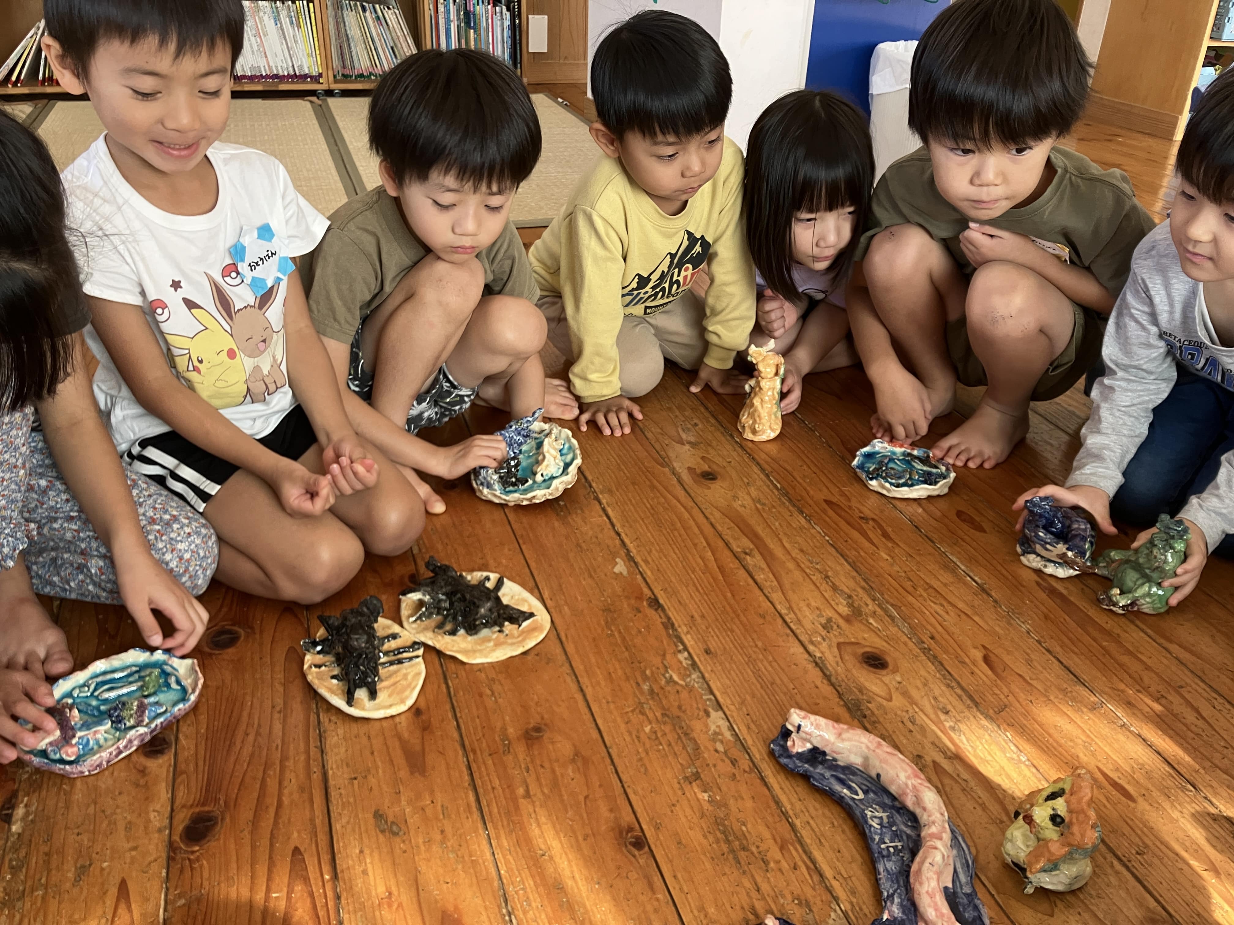 幼児さんは先月の陶芸教室で作った作品が完成したのでお披露目会です♬
