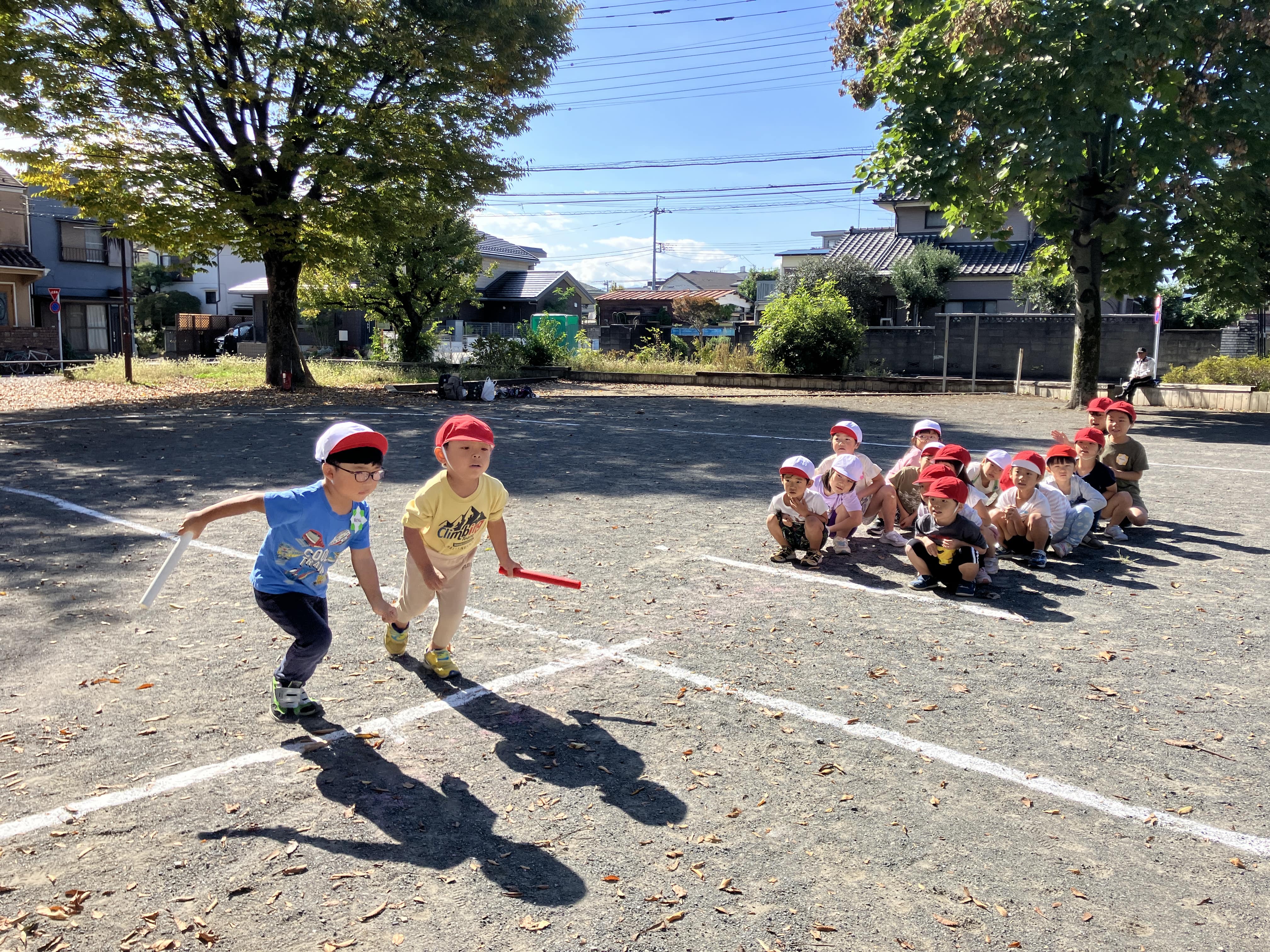 小学生の姿に刺激を受けて今度は自分たちが走る番! いよいよ今週末に迫った運動会に向けて気合十分!