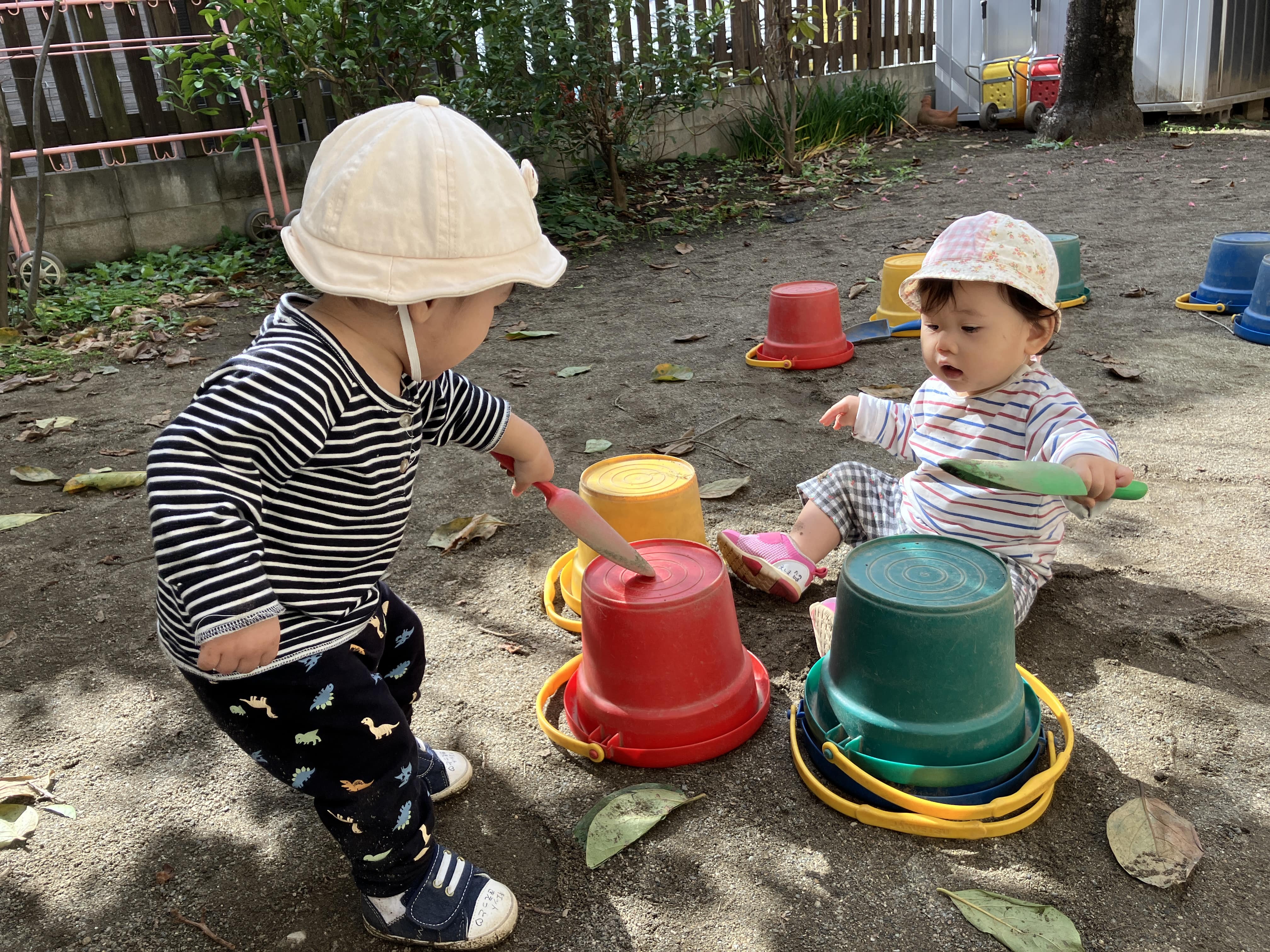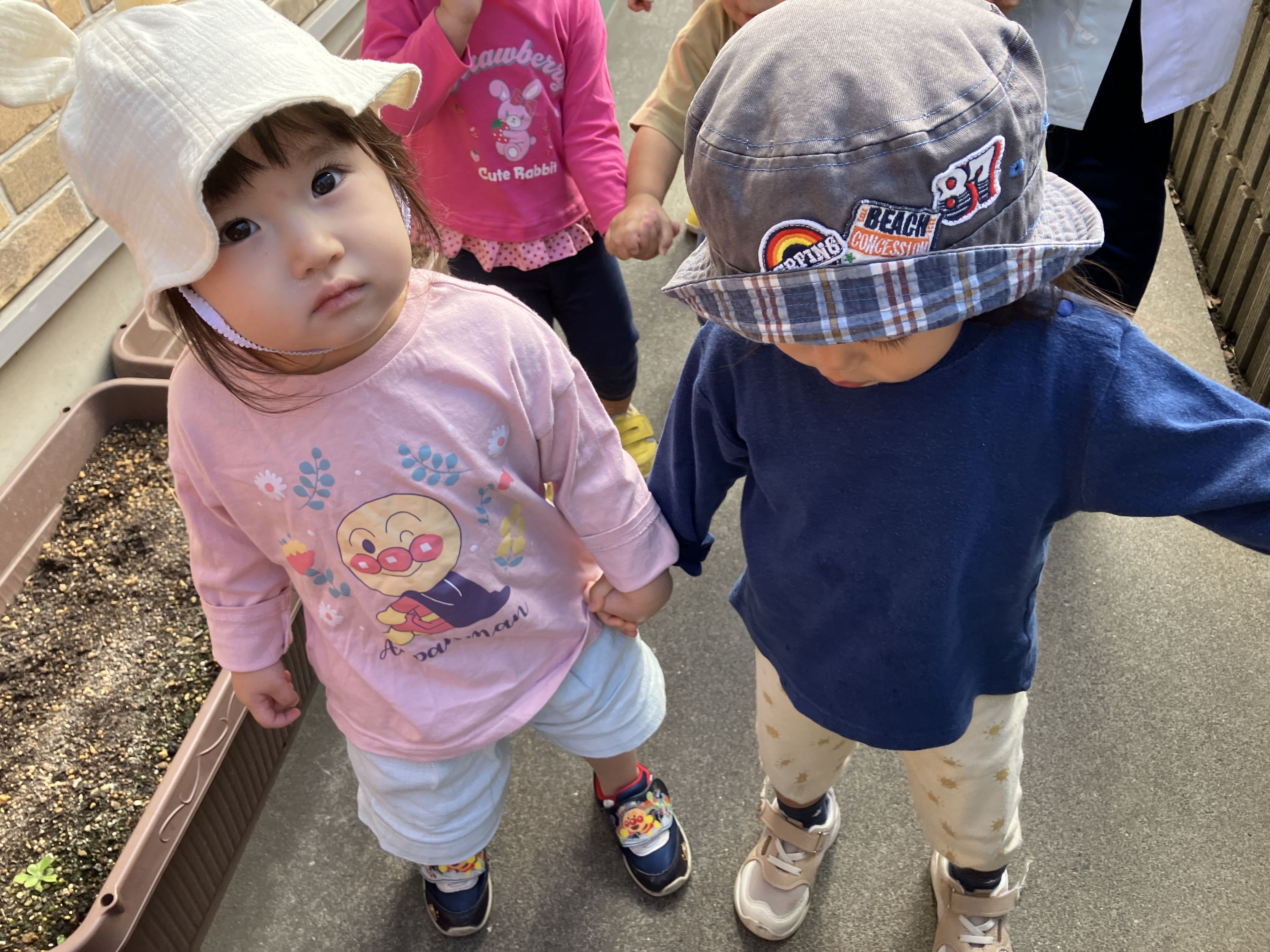 1,2歳児さんは一緒に公園までお散歩しました♬ 今日はちょっとお姉さん気分😊