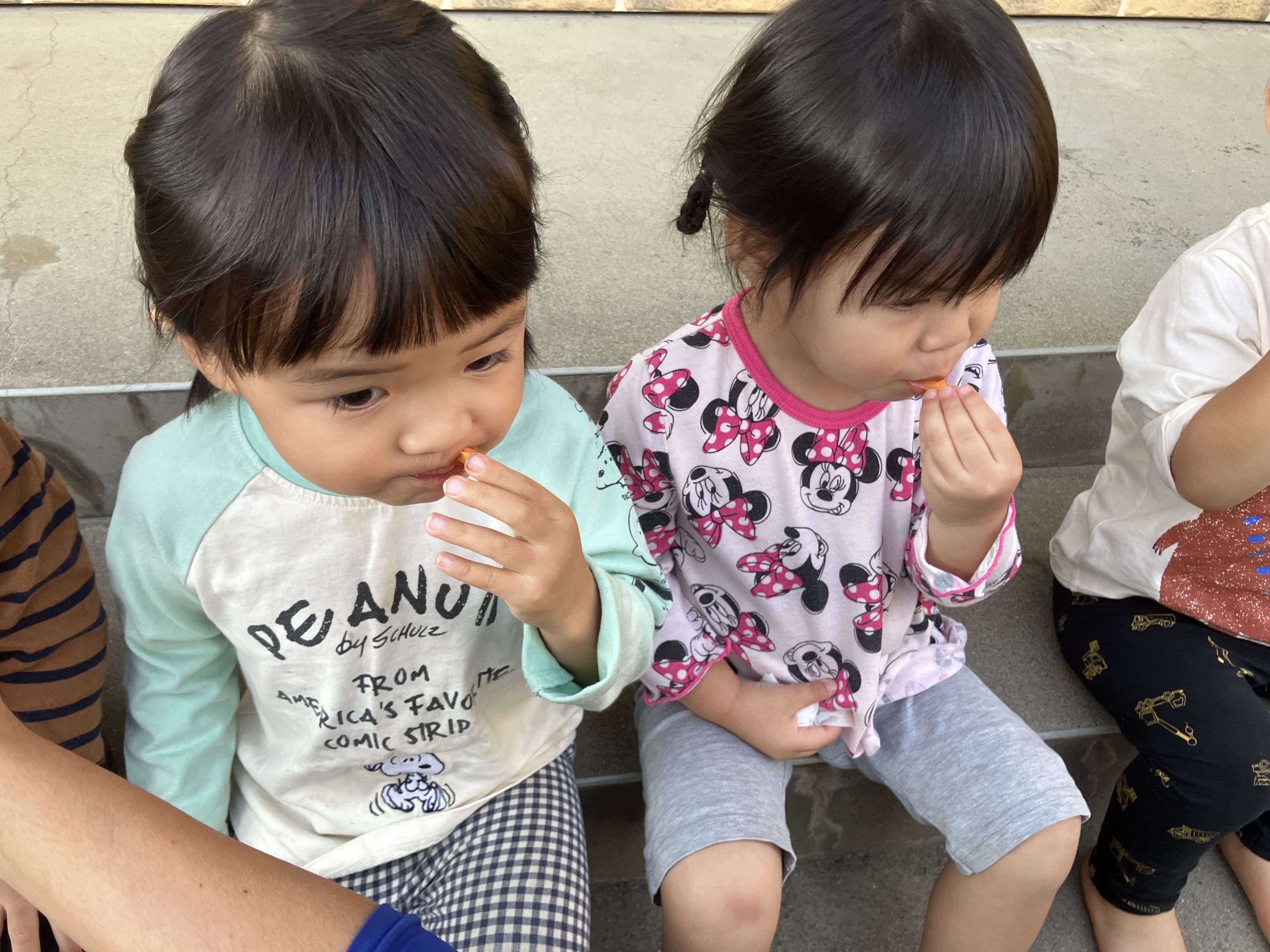 「いただきまーす!」 幼児と乳児が揃って秋の味覚を楽しみました♬