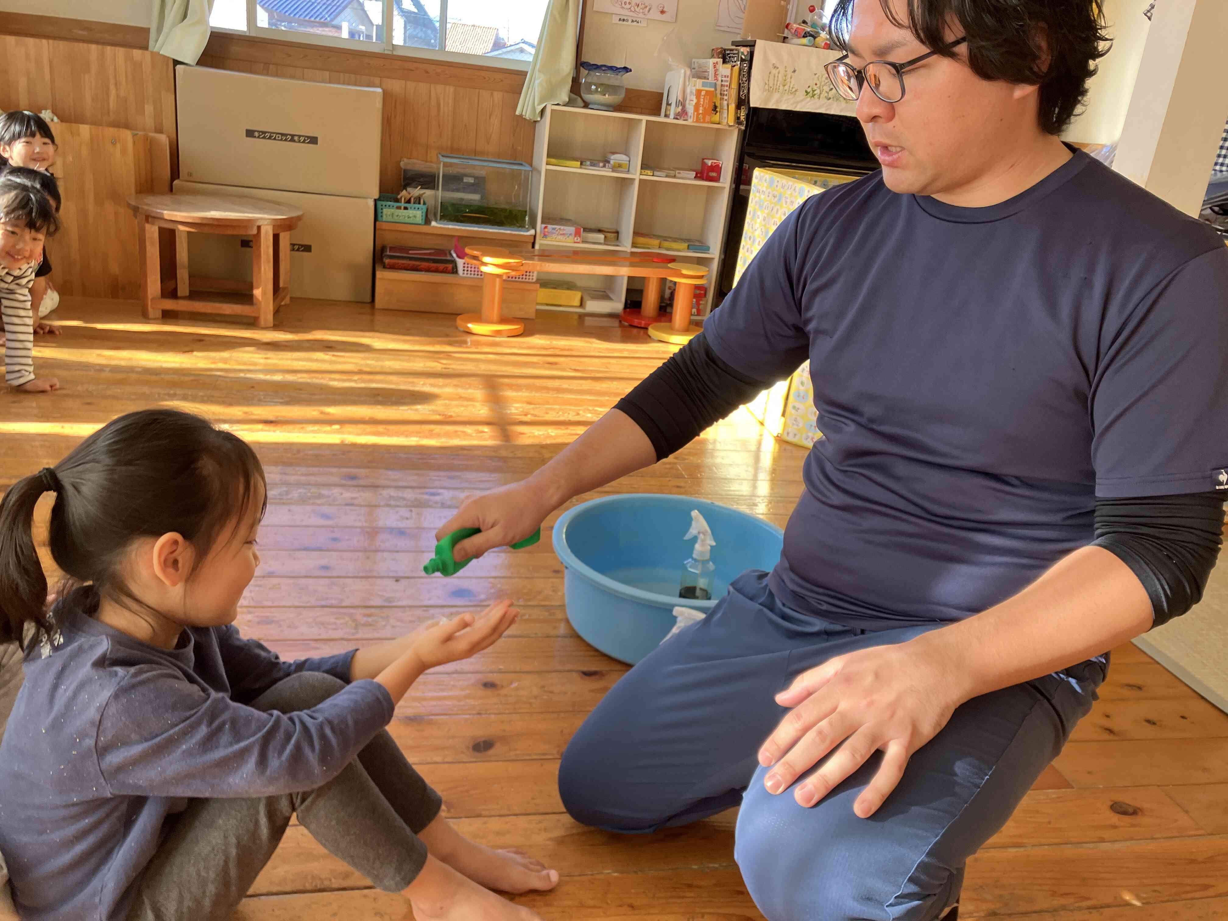 「今日はこの不思議な水を使って手洗いの勉強をします!」