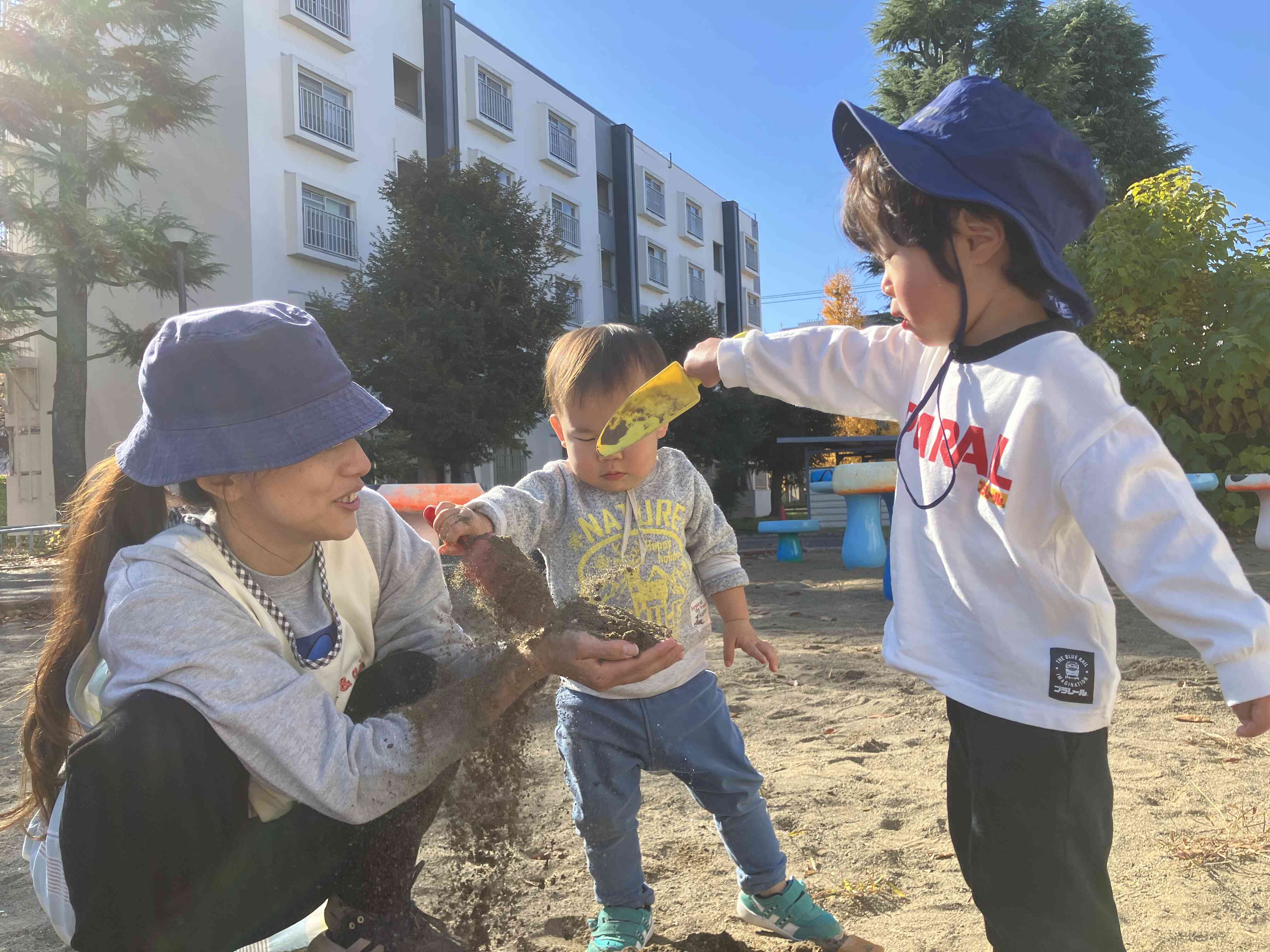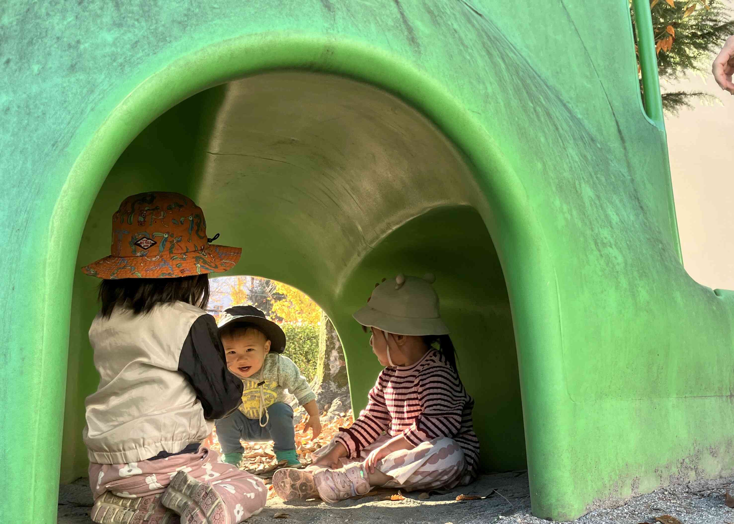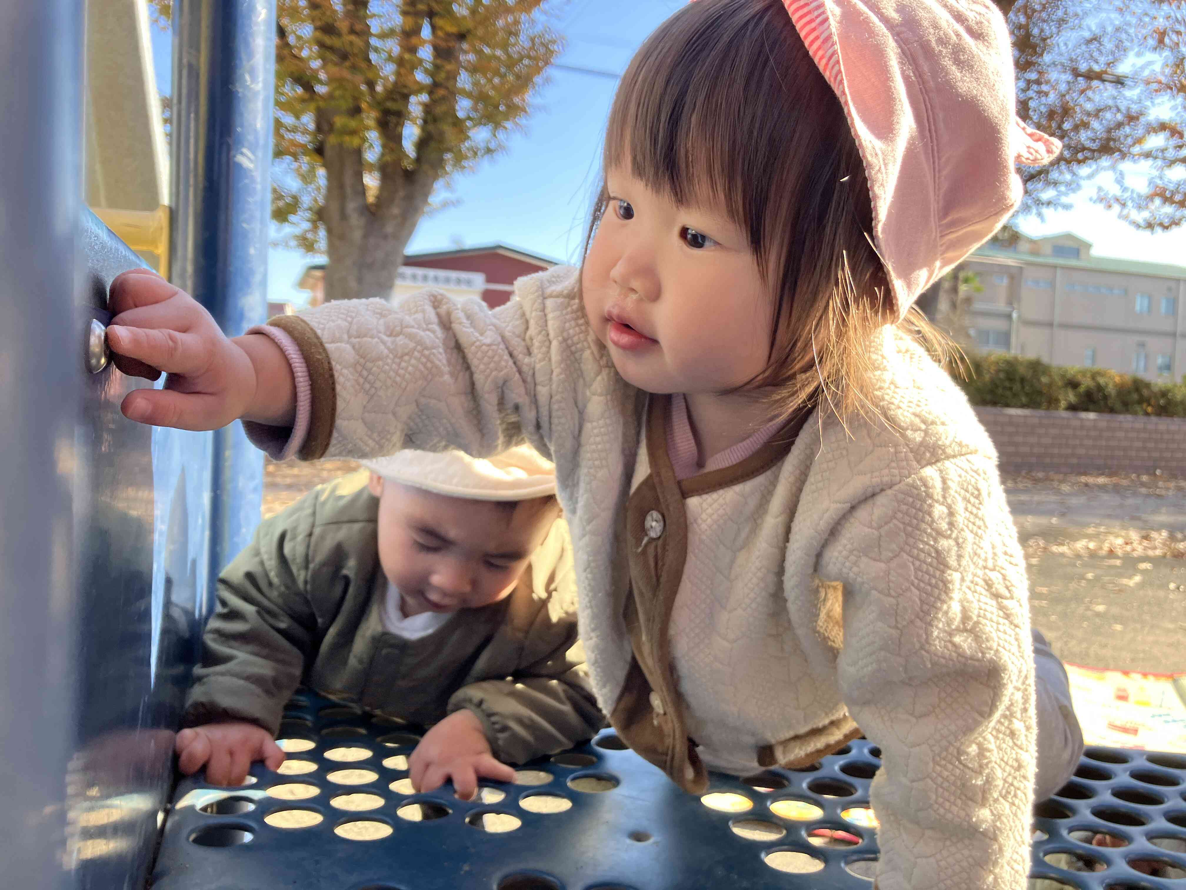 1・2歳児は一緒にブタ公園へ。「お友達 みーつけたっ!!」