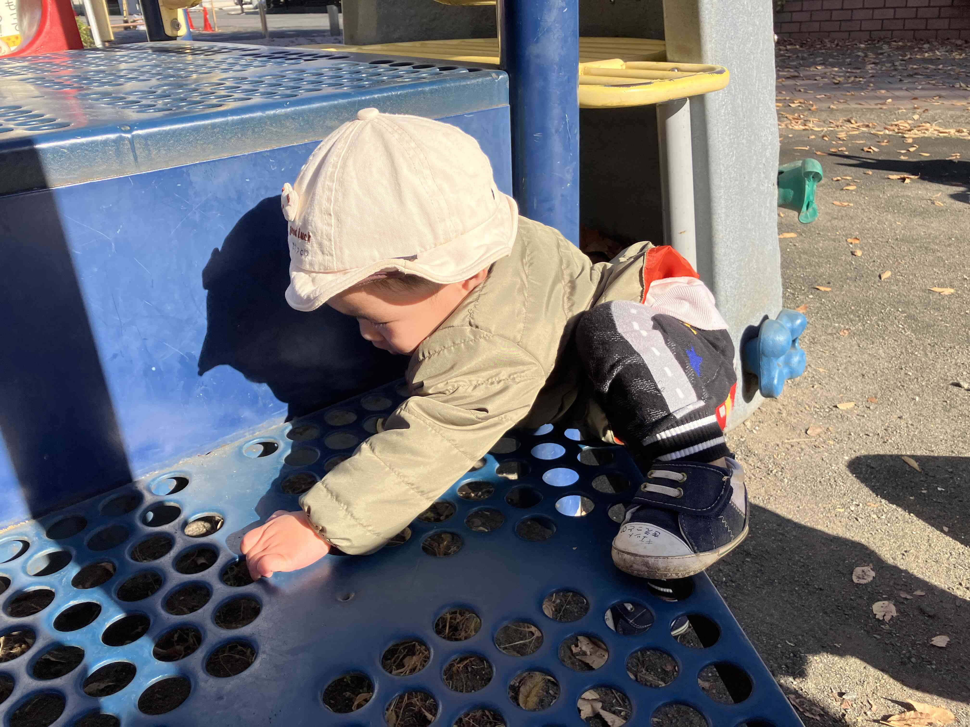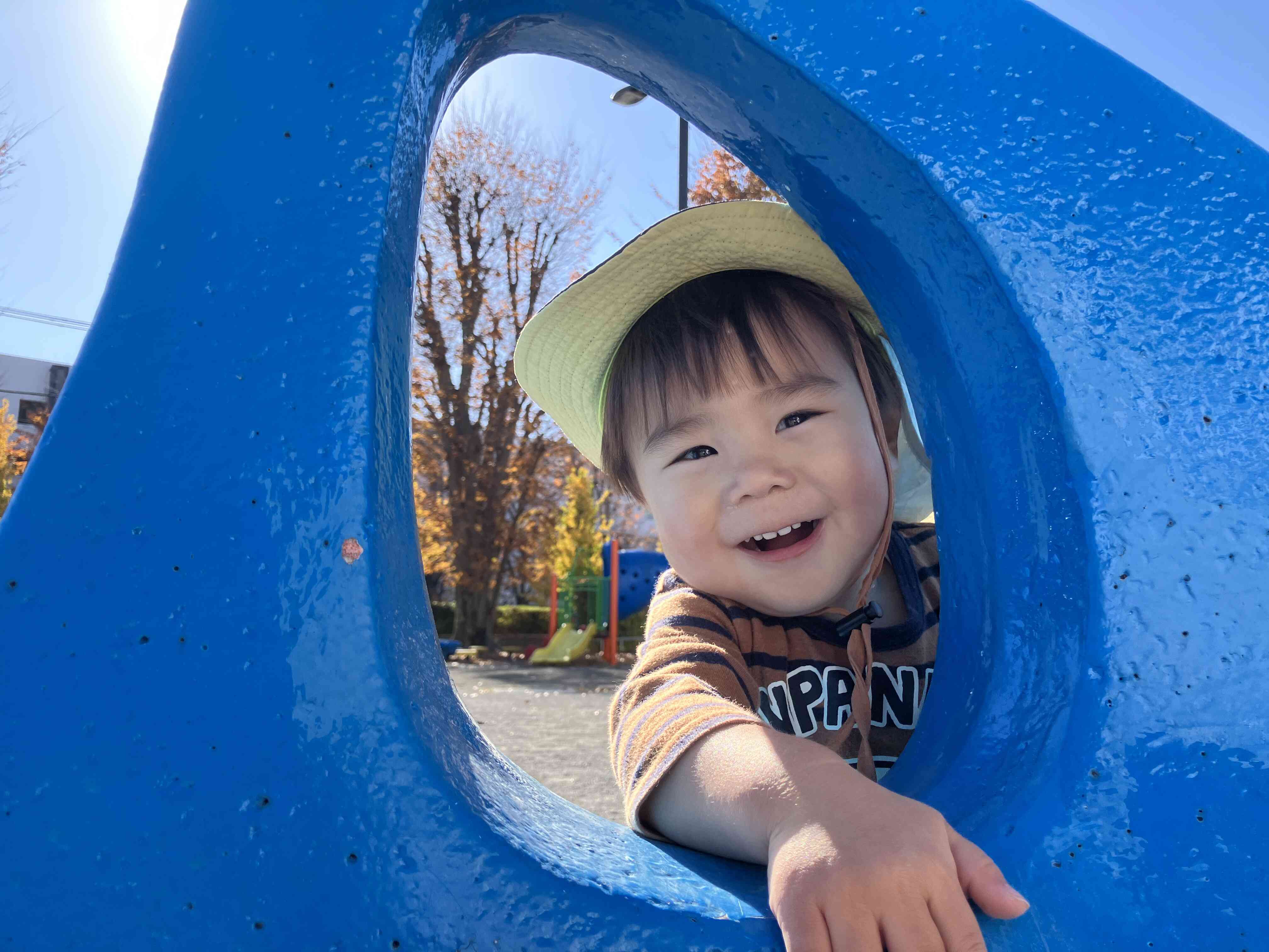 「ばぁ!!!」先生とタイミングがバッチリ合うと大喜び♪