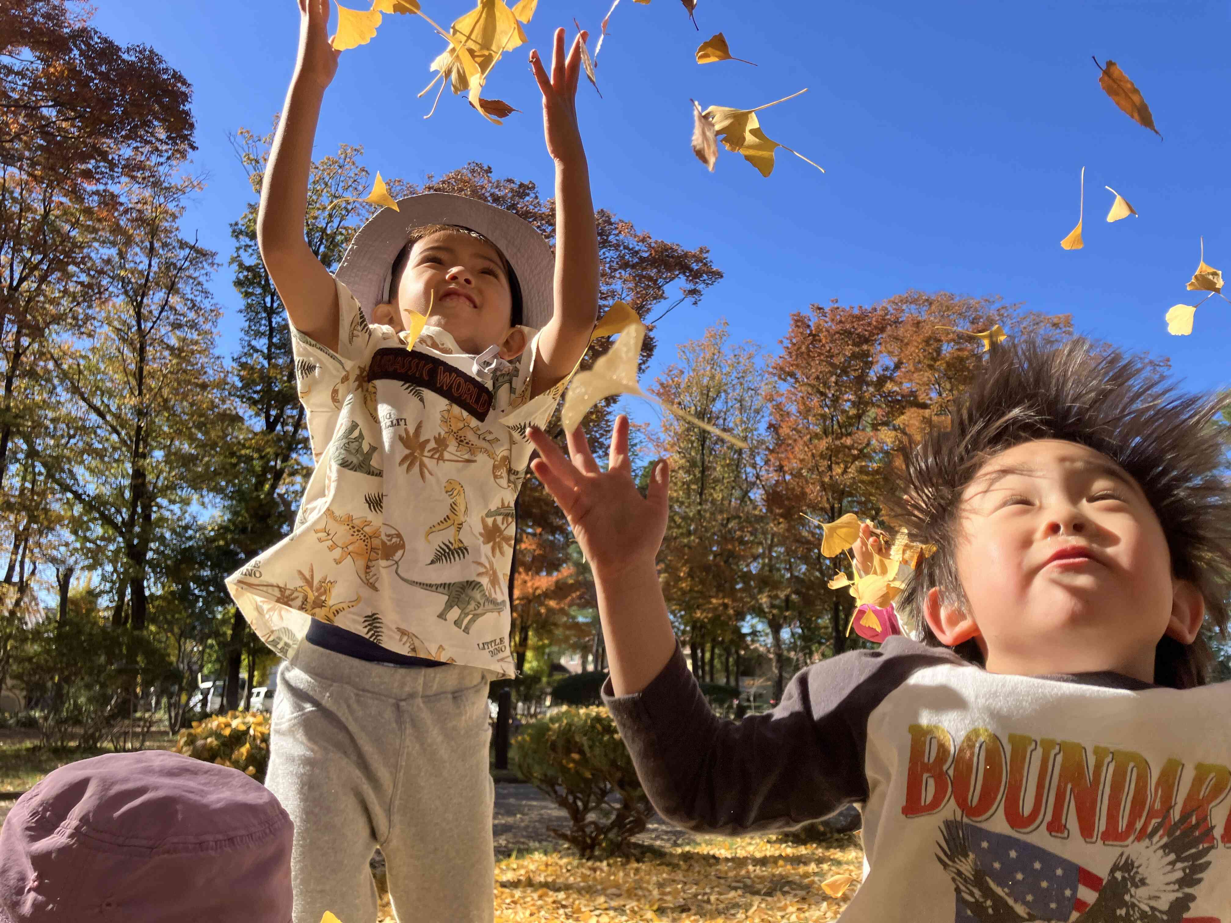 イチョウのシャワーだ「それ~っ!!」