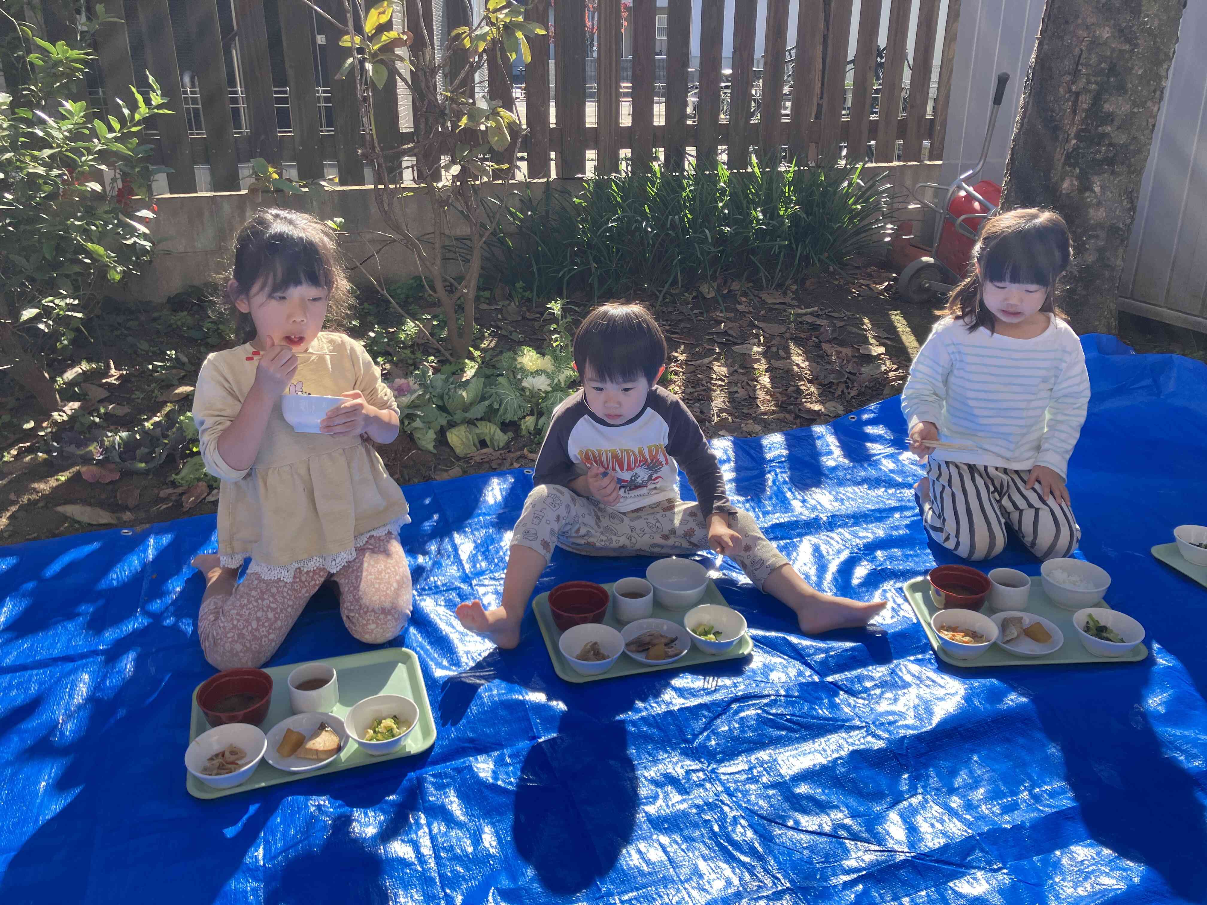 給食はポカポカの園庭で食べました。