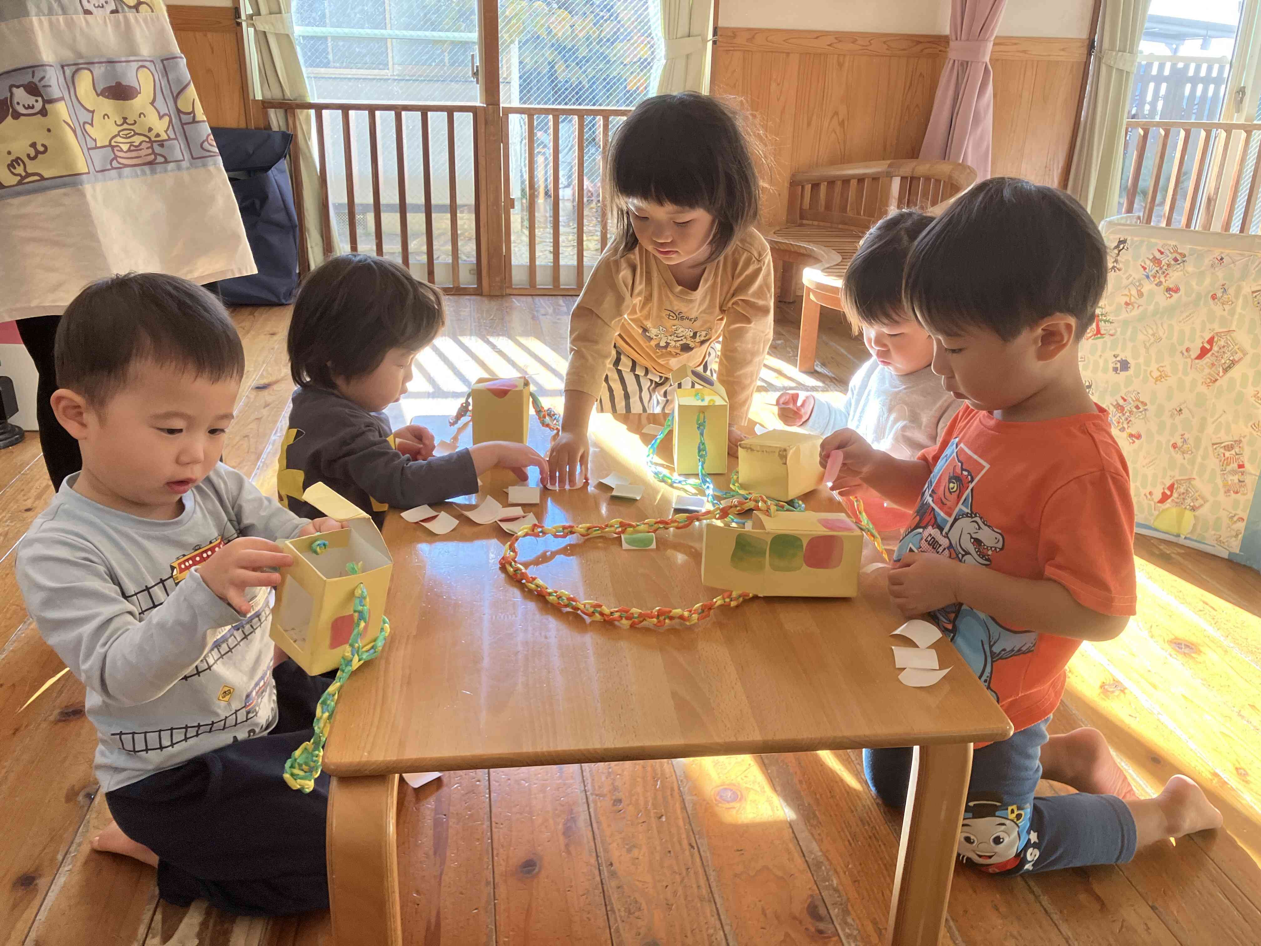 2歳児はマイバッグにシール貼り。「どれにしようかな?」