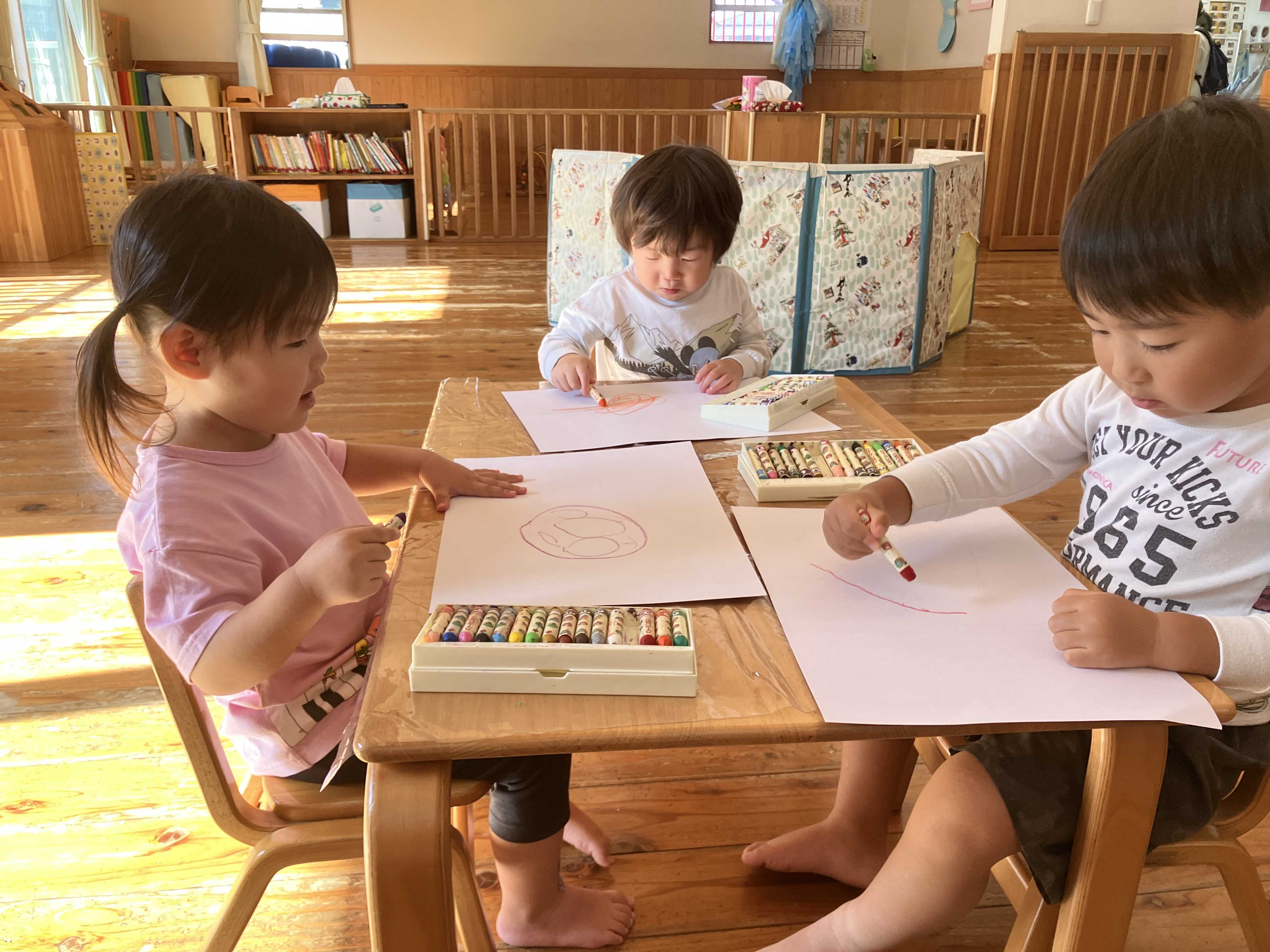 2歳児さんは公園に行く前にお絵描きタイム♬何を描いたのかな?「アンパンマン!」