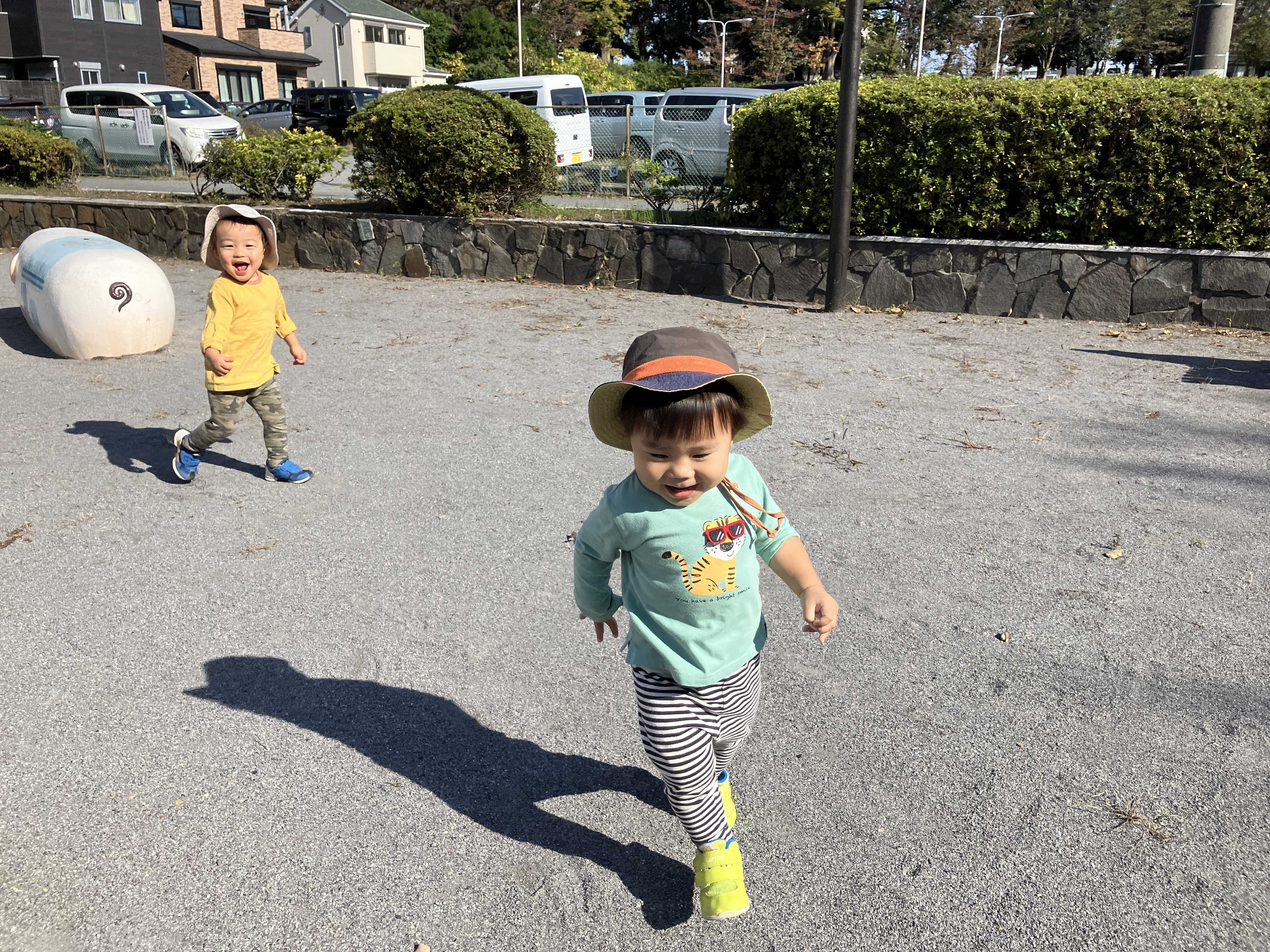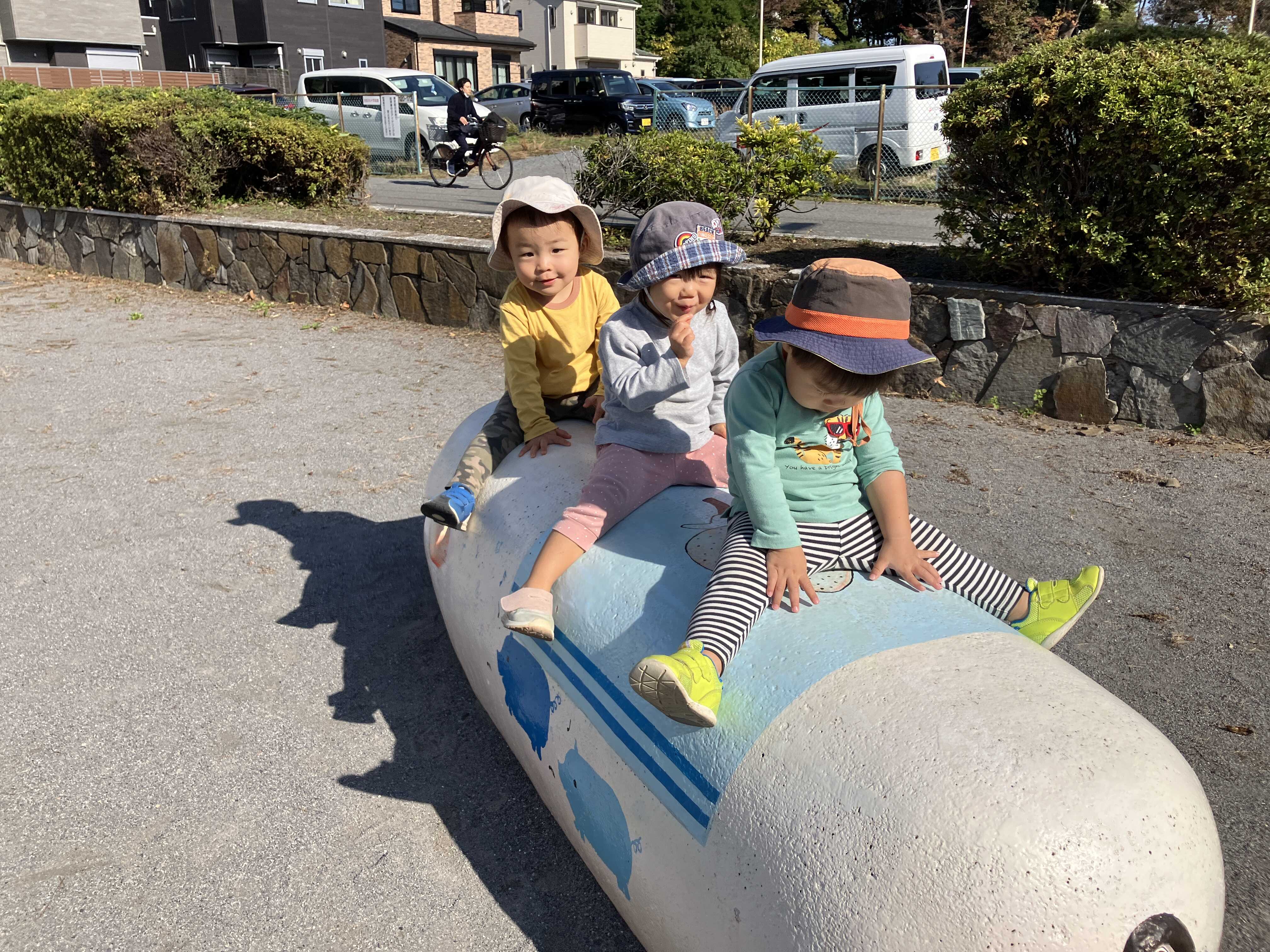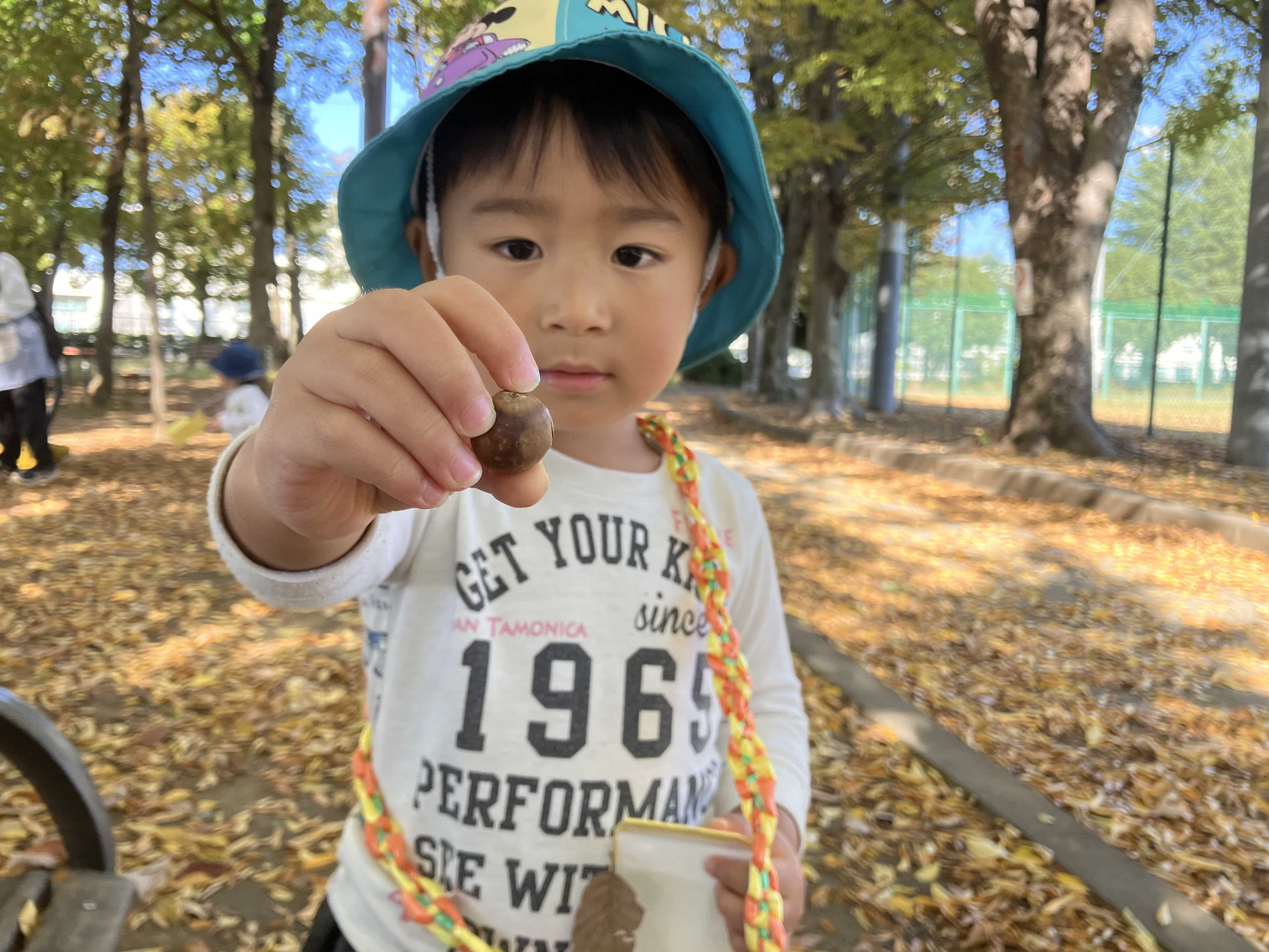 公園ではどんぐりを発見!「見て、まあるいのもあった♬」大事にバッグにしまってお土産にしました。
