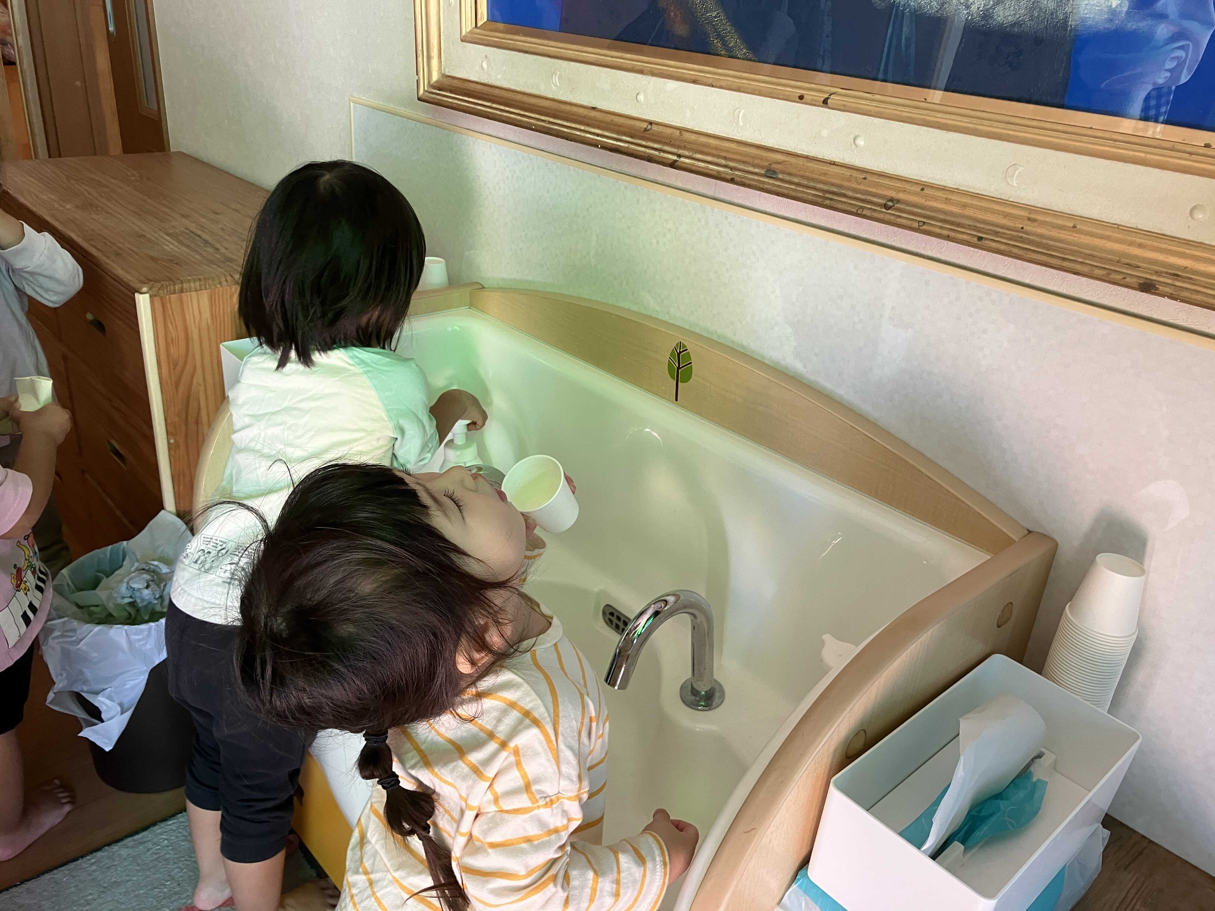 帰ったら手洗いうがい!ガラガラうがいがとっても上手♪