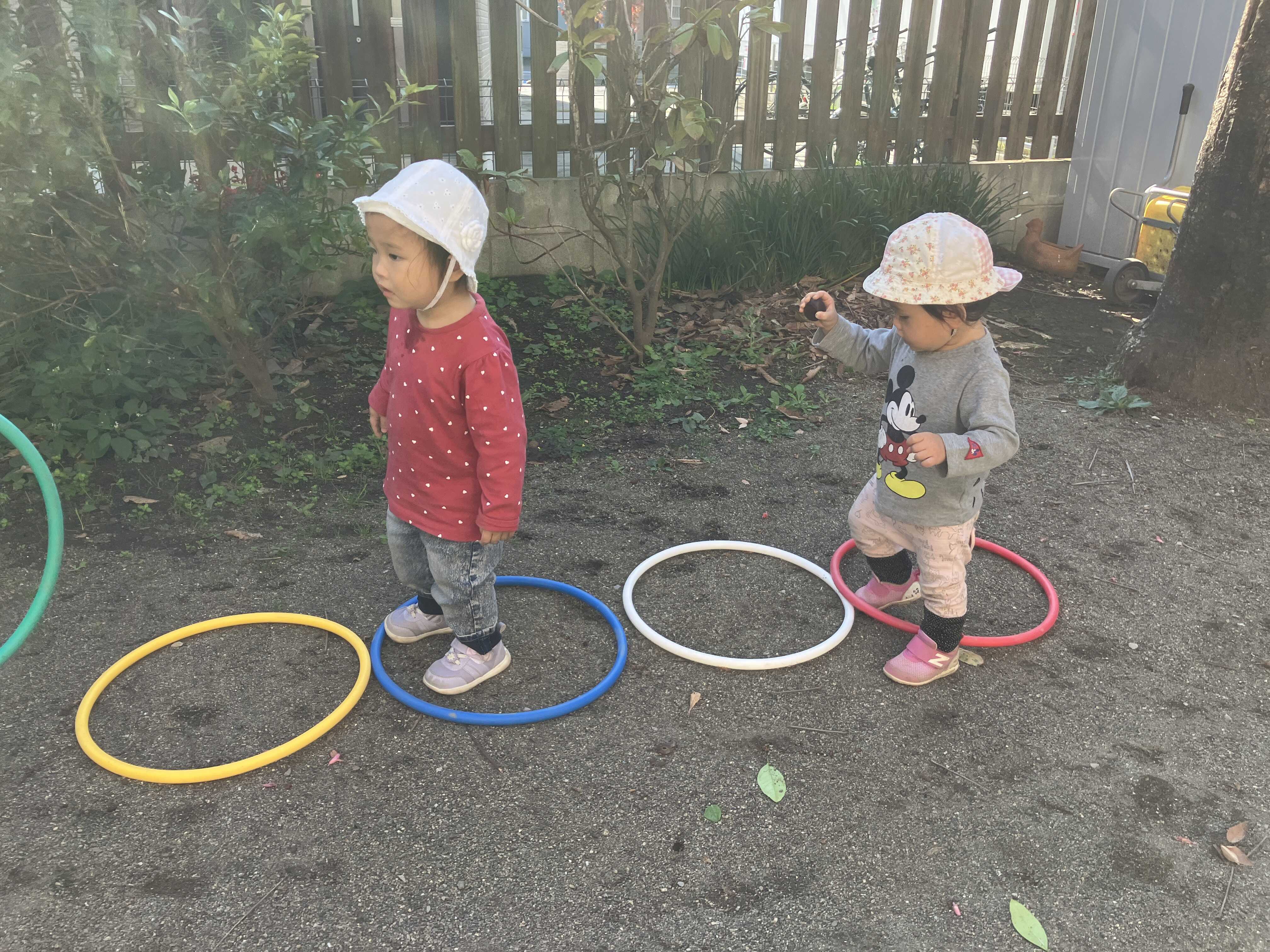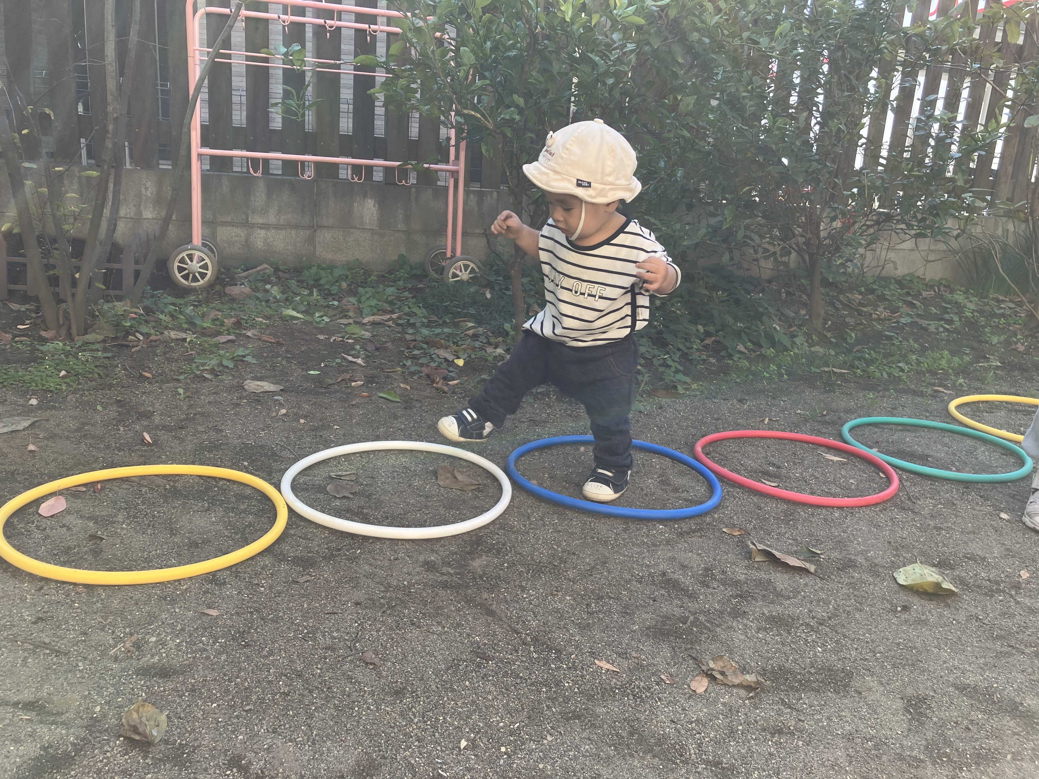 僕も挑戦!足を上げてバランスをとるのがちょっと難しいけどお友達の真似っこをしながら楽しんでいます♬