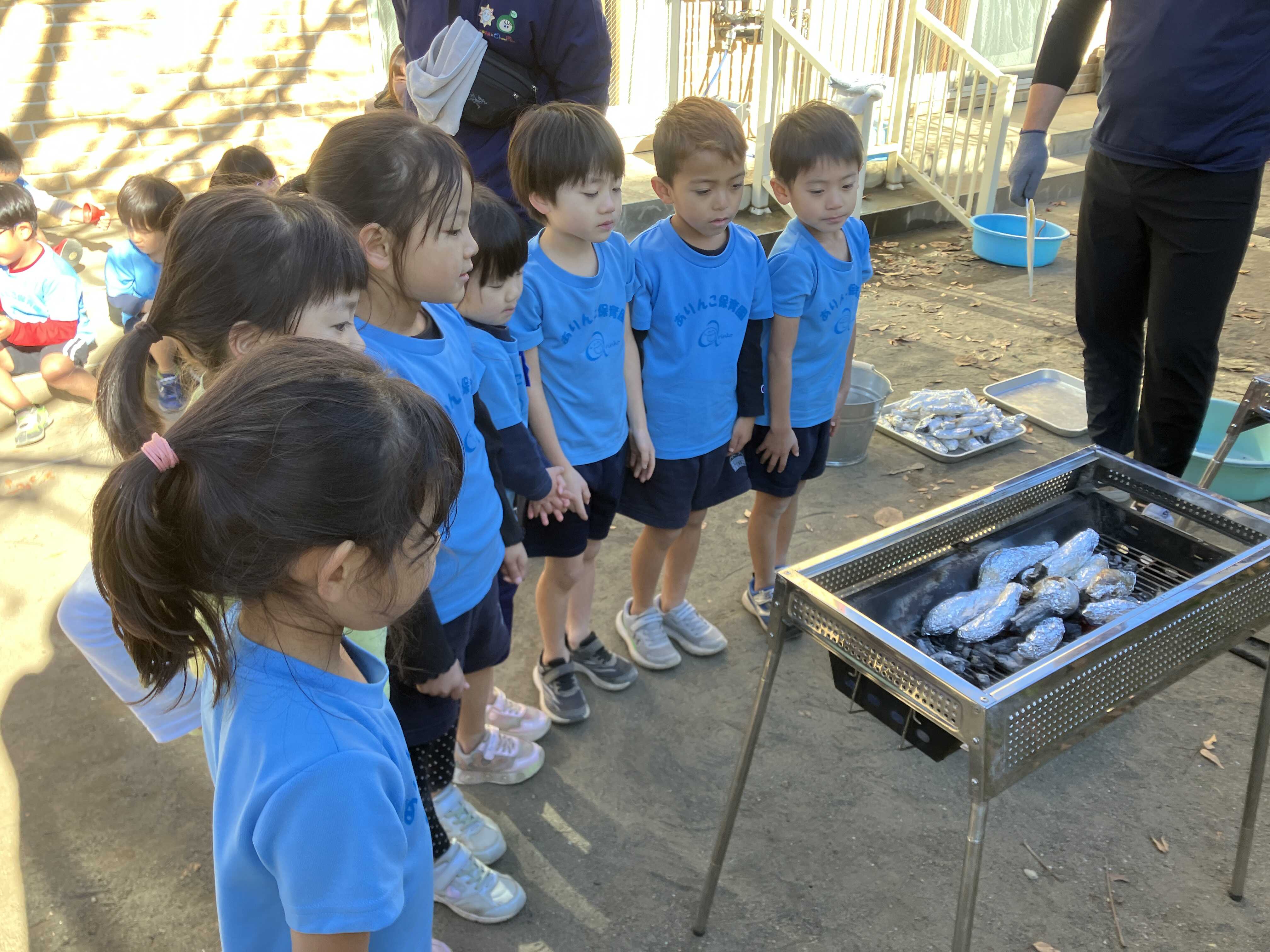 「焼けたかな~?」体育の間に先生が焼いてくれました!