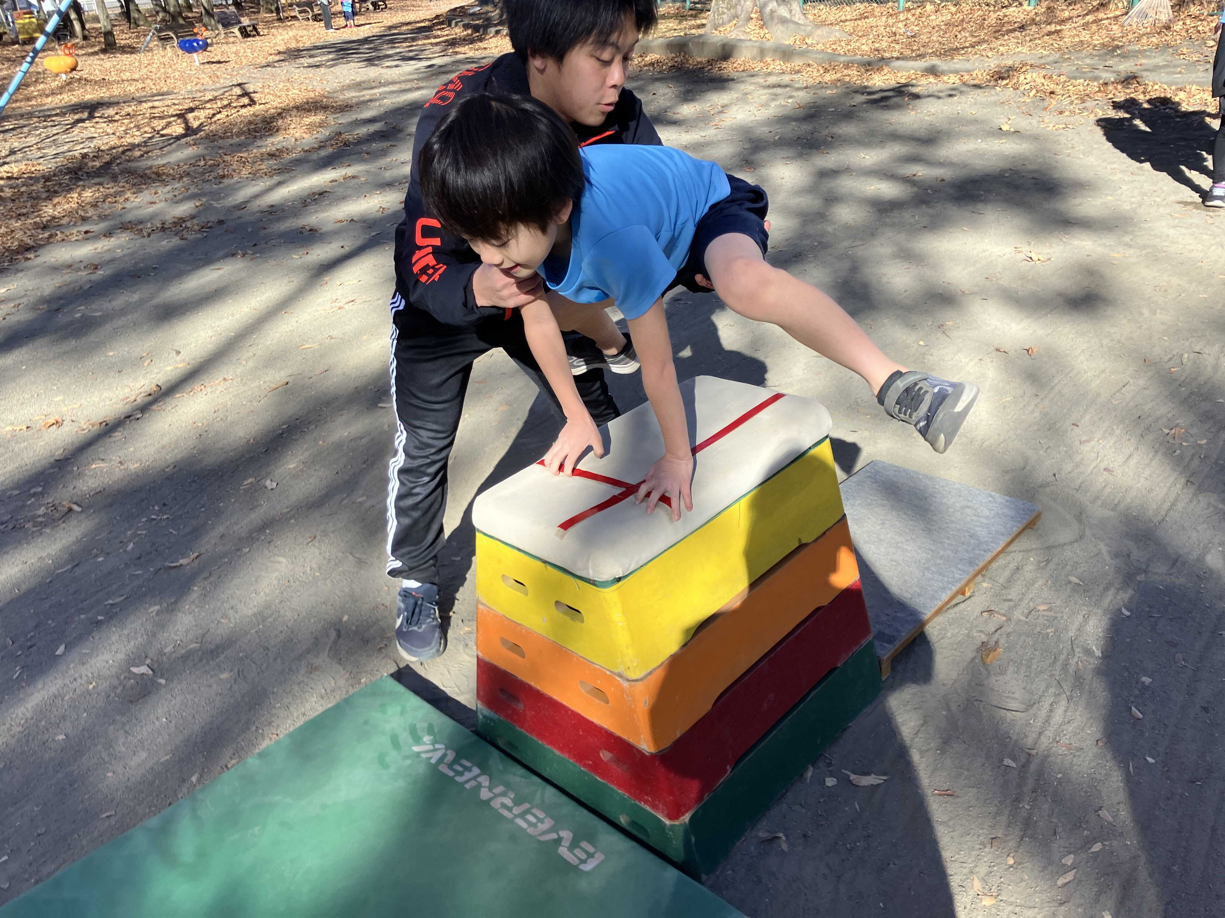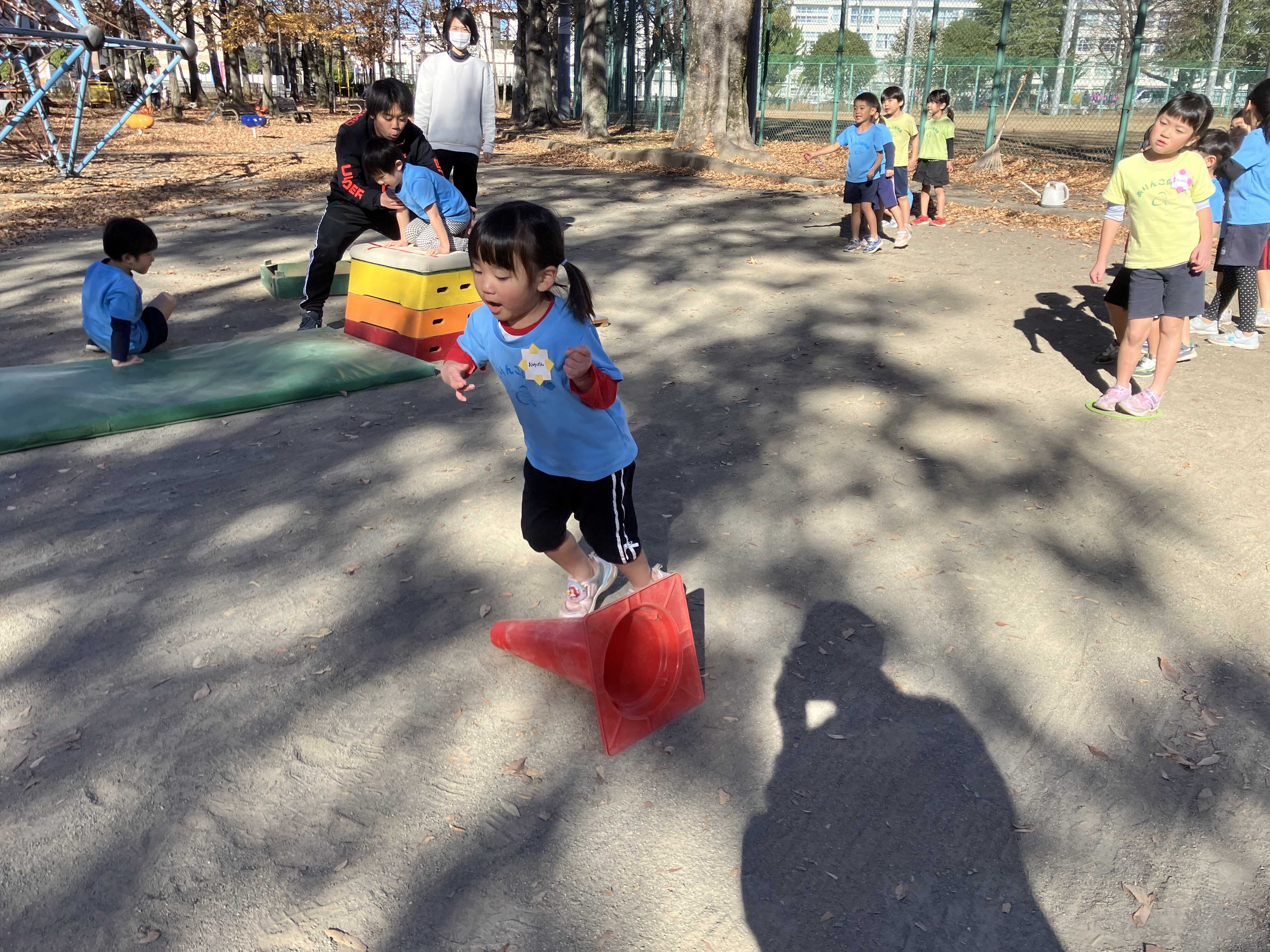 5歳児さんは縦跳びに挑戦!全員怖がることなく跳べました。