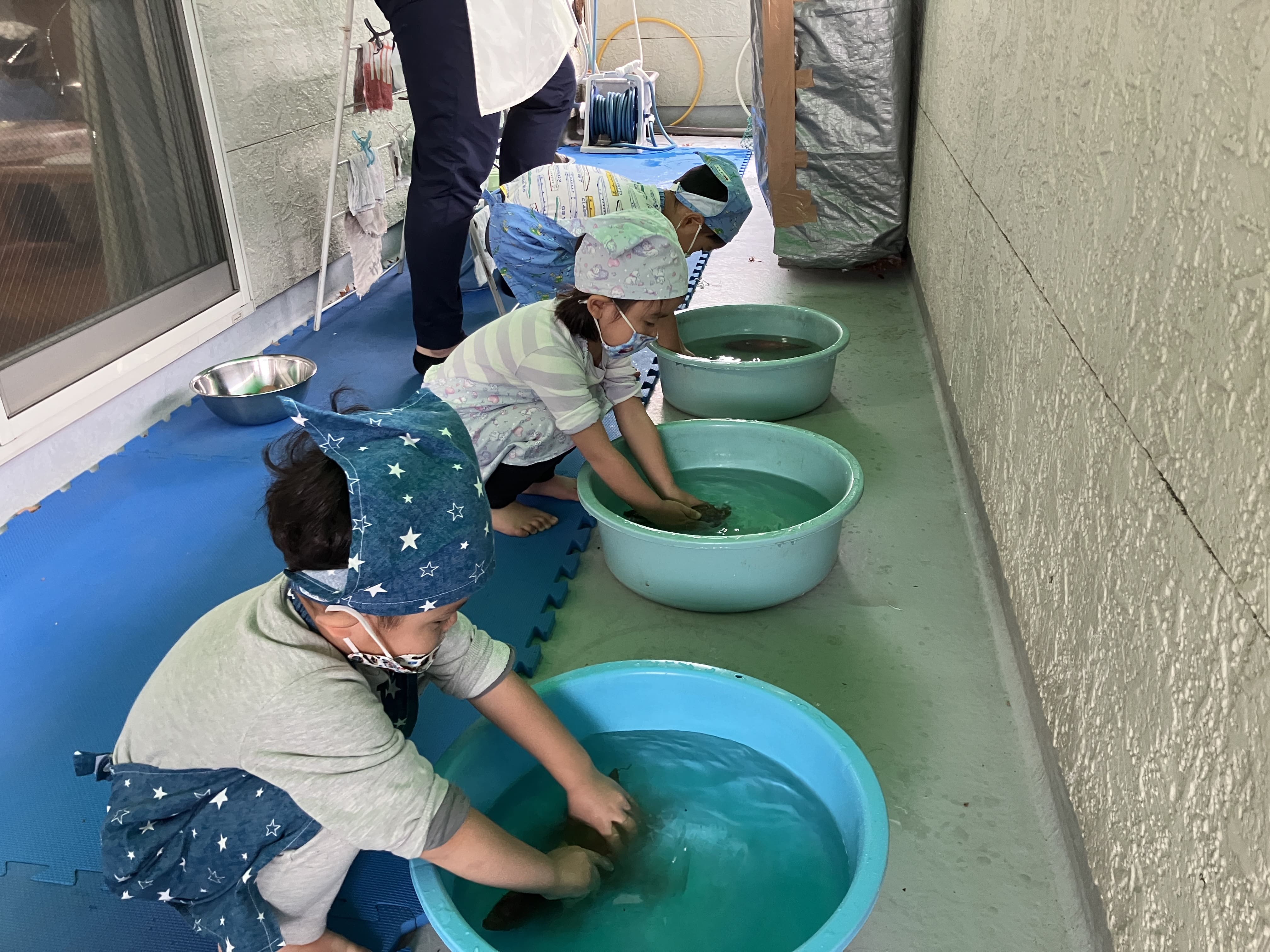 幼児さんは先日採ってきたさつま芋で芋煮会! 3歳児さんはお芋を洗ってくれました♬