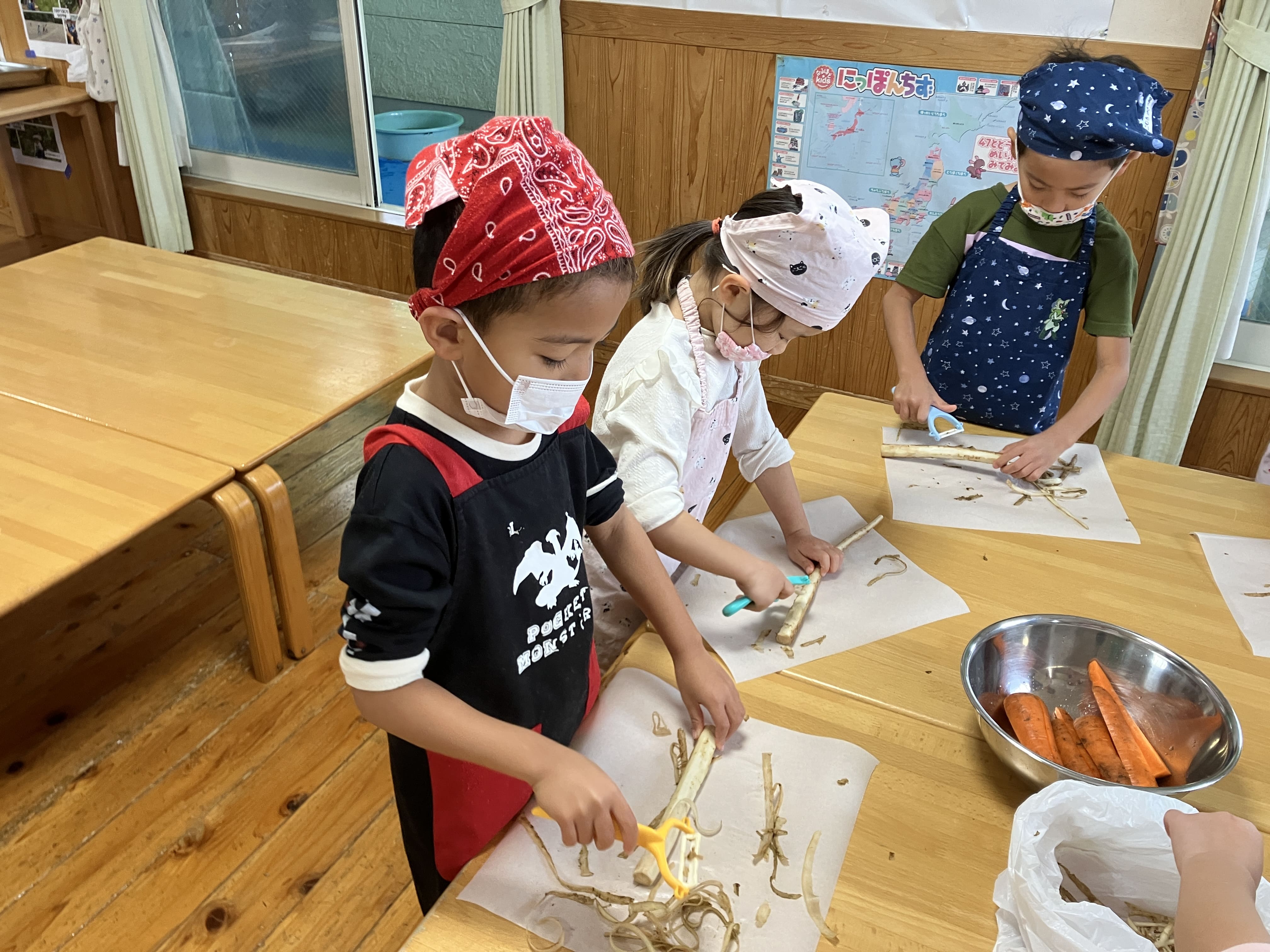 4歳児さんはピーラーで皮むきをしてくれました♬