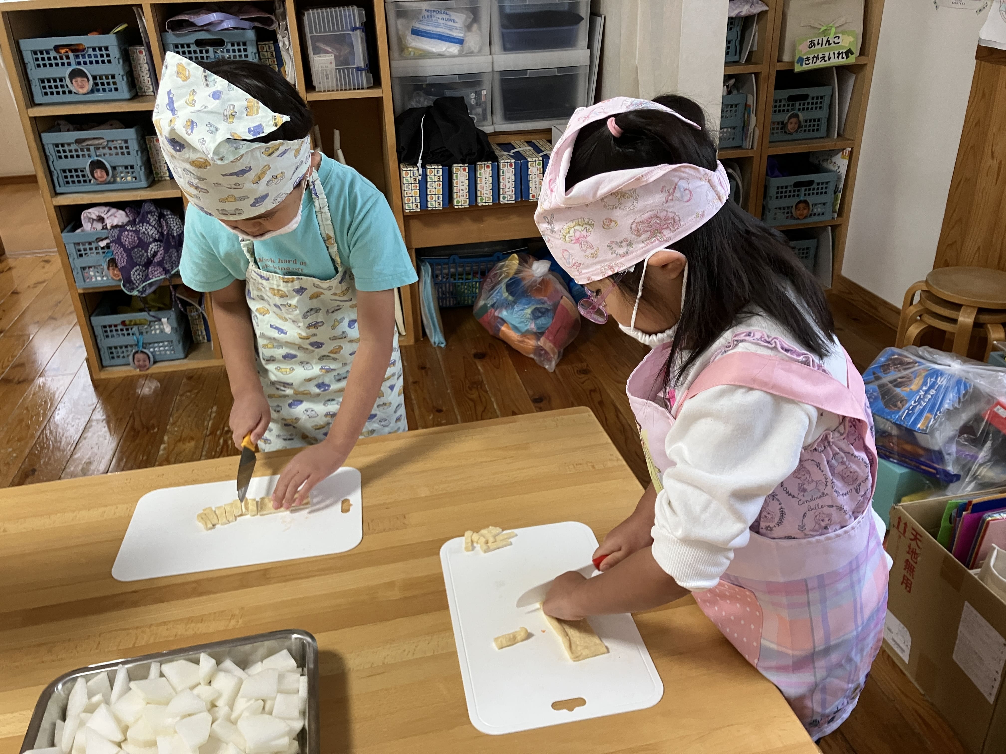 5歳児さんは包丁で食材を切ってくれました♬