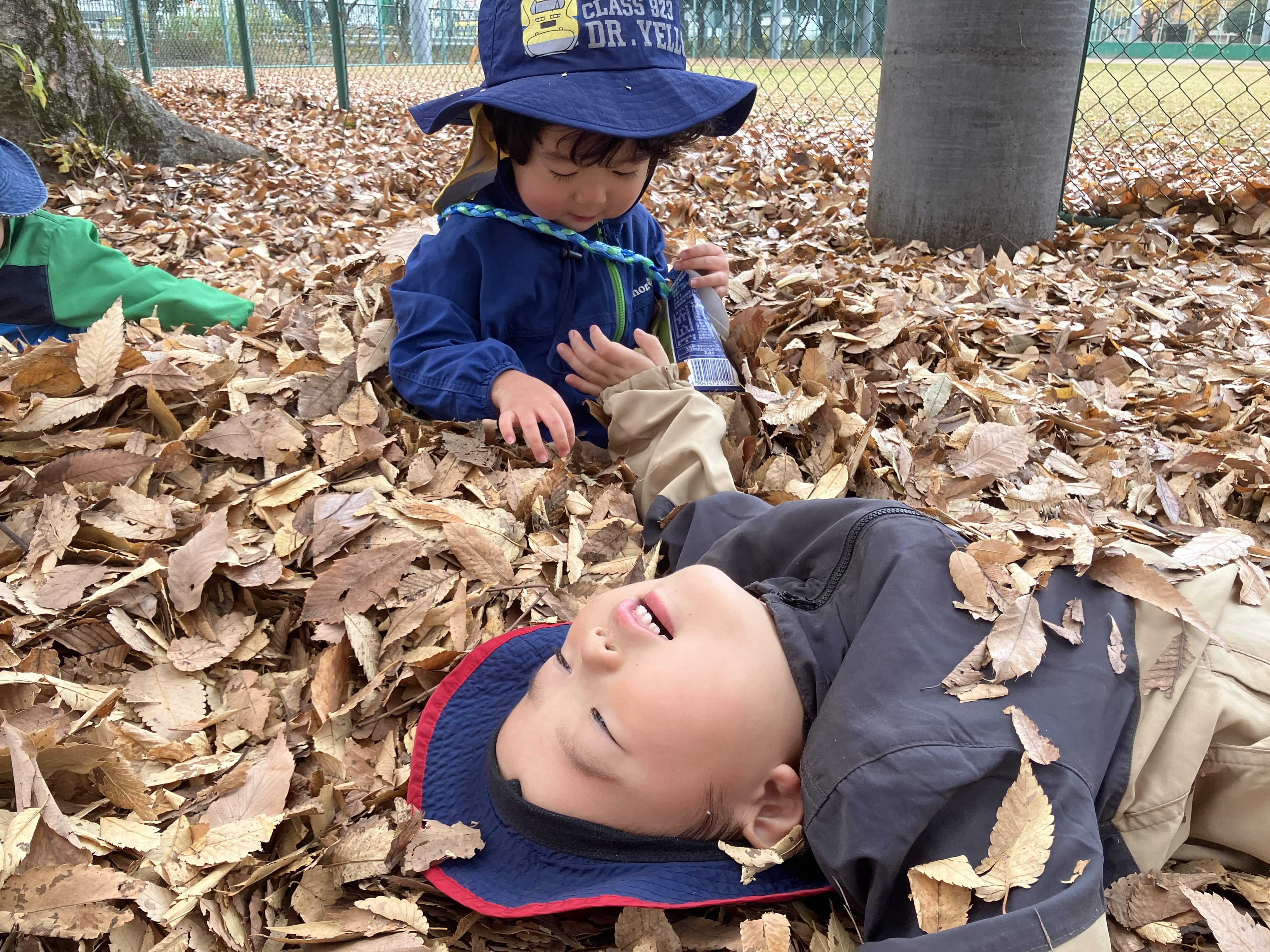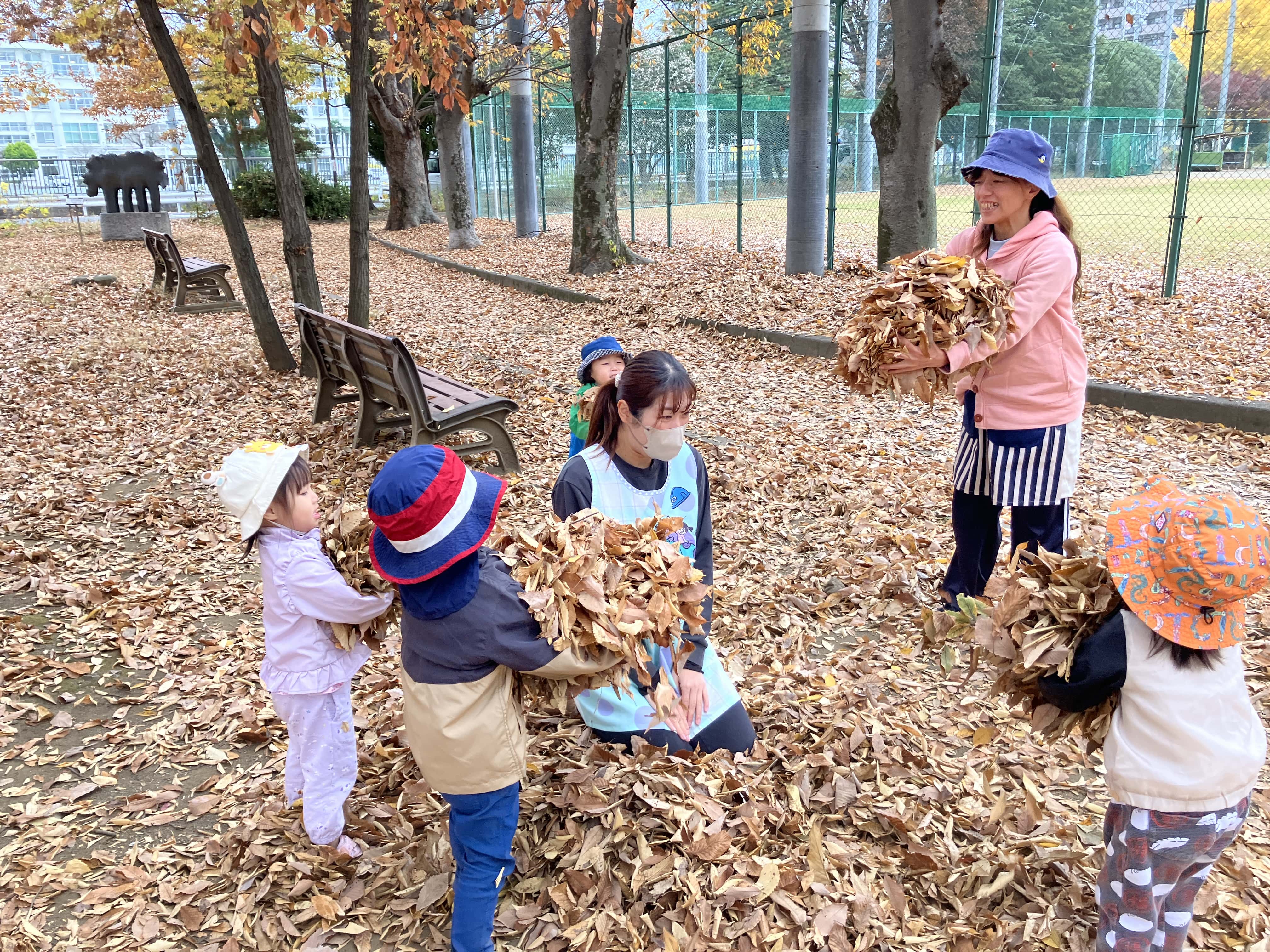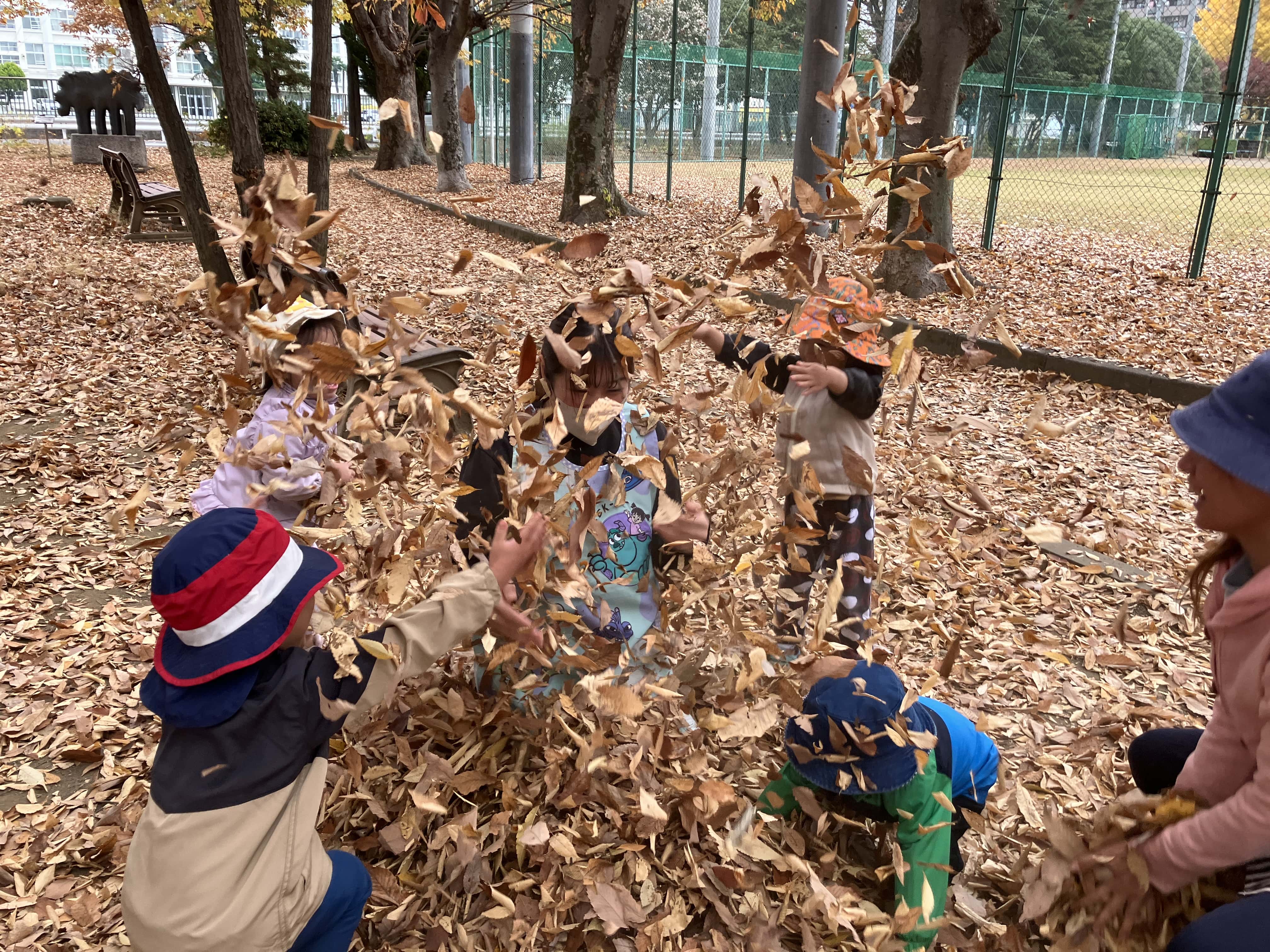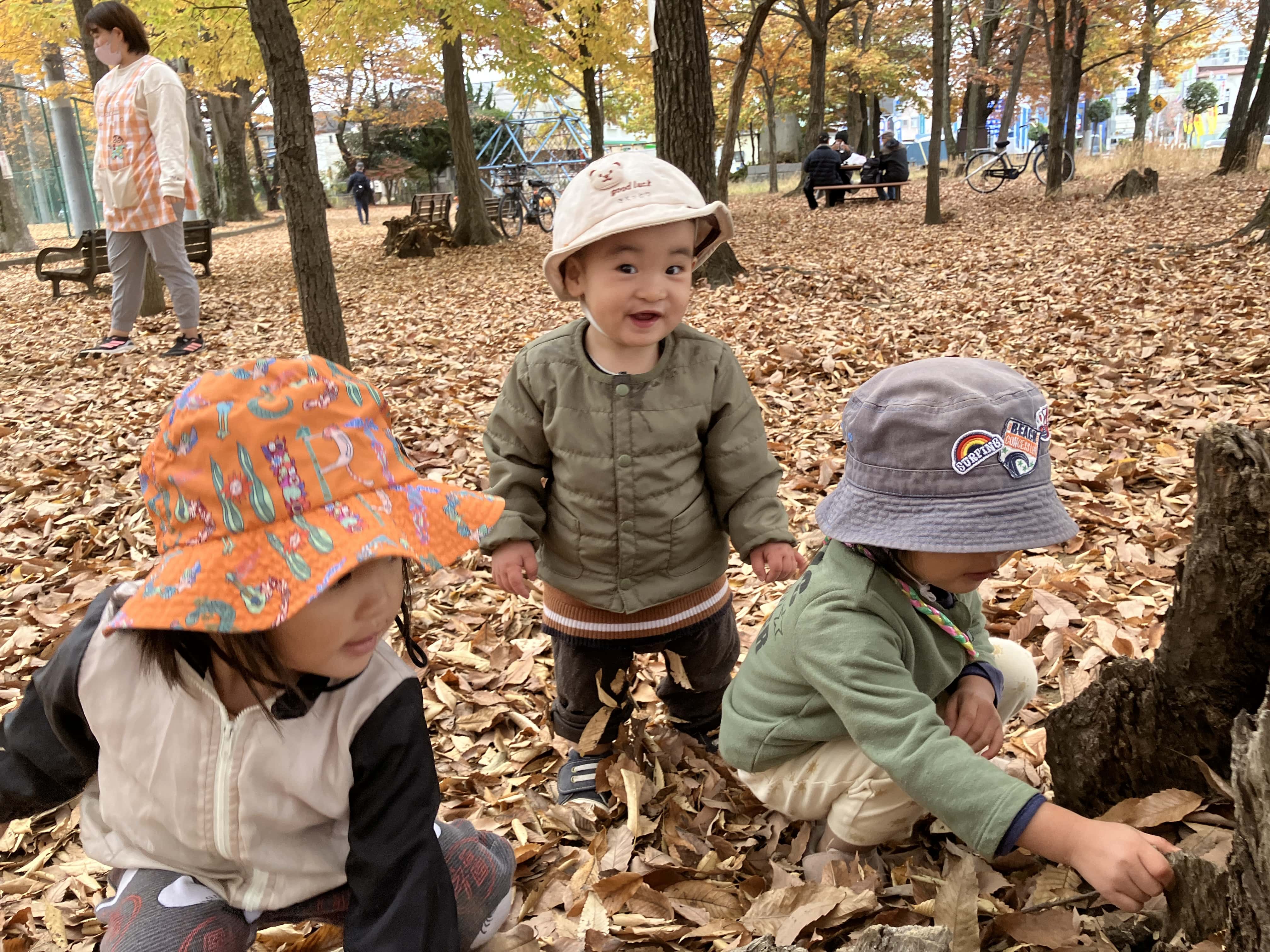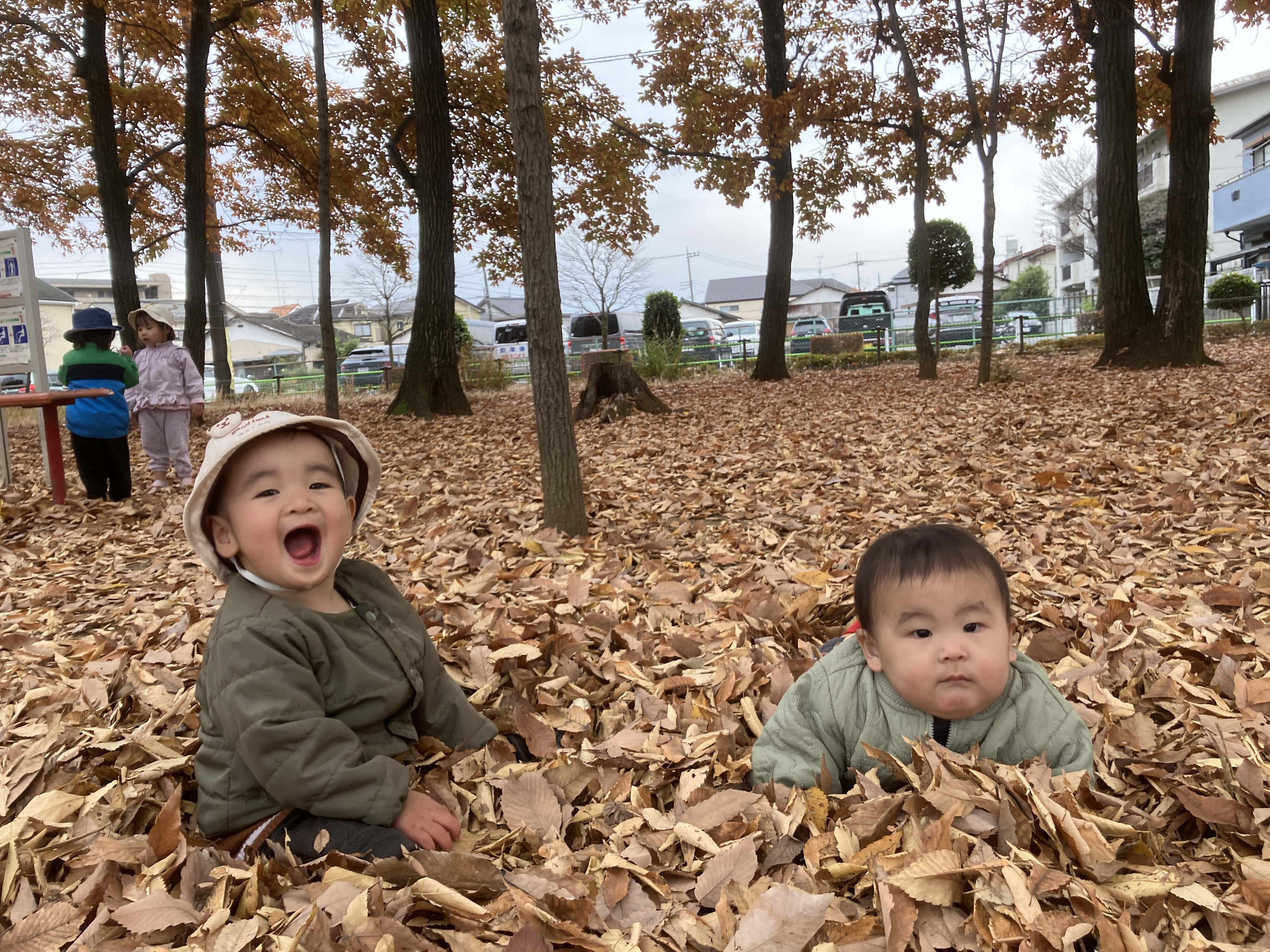 乳児クラスは落ち葉がいっぱいの公園をお散歩しました♬