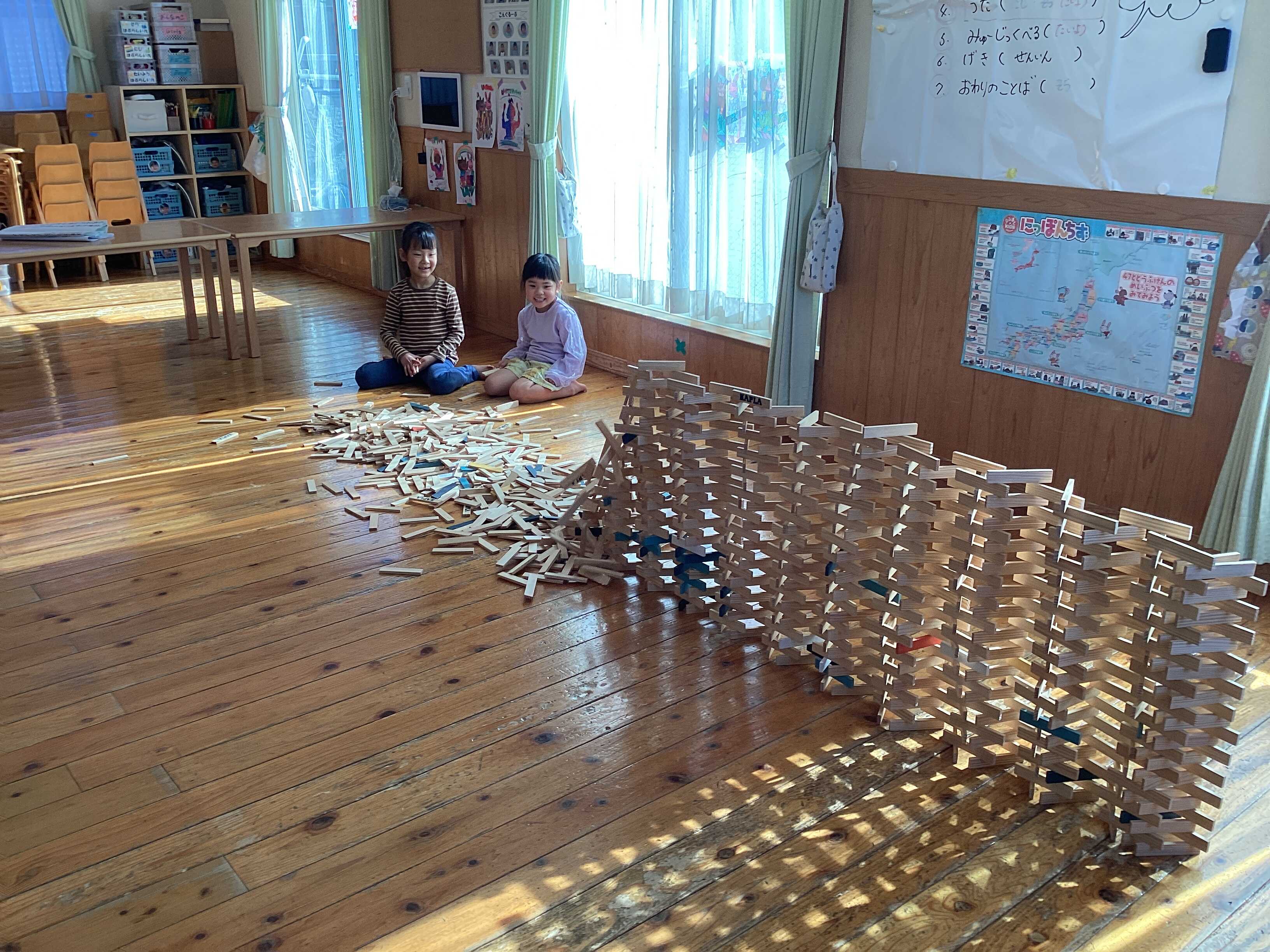 • 一番端の一つを抜くと一気に崩れていきます! これが通称「ナイアガラの滝」! 崩れていく豪快な様子に大盛り上がりでした♬
