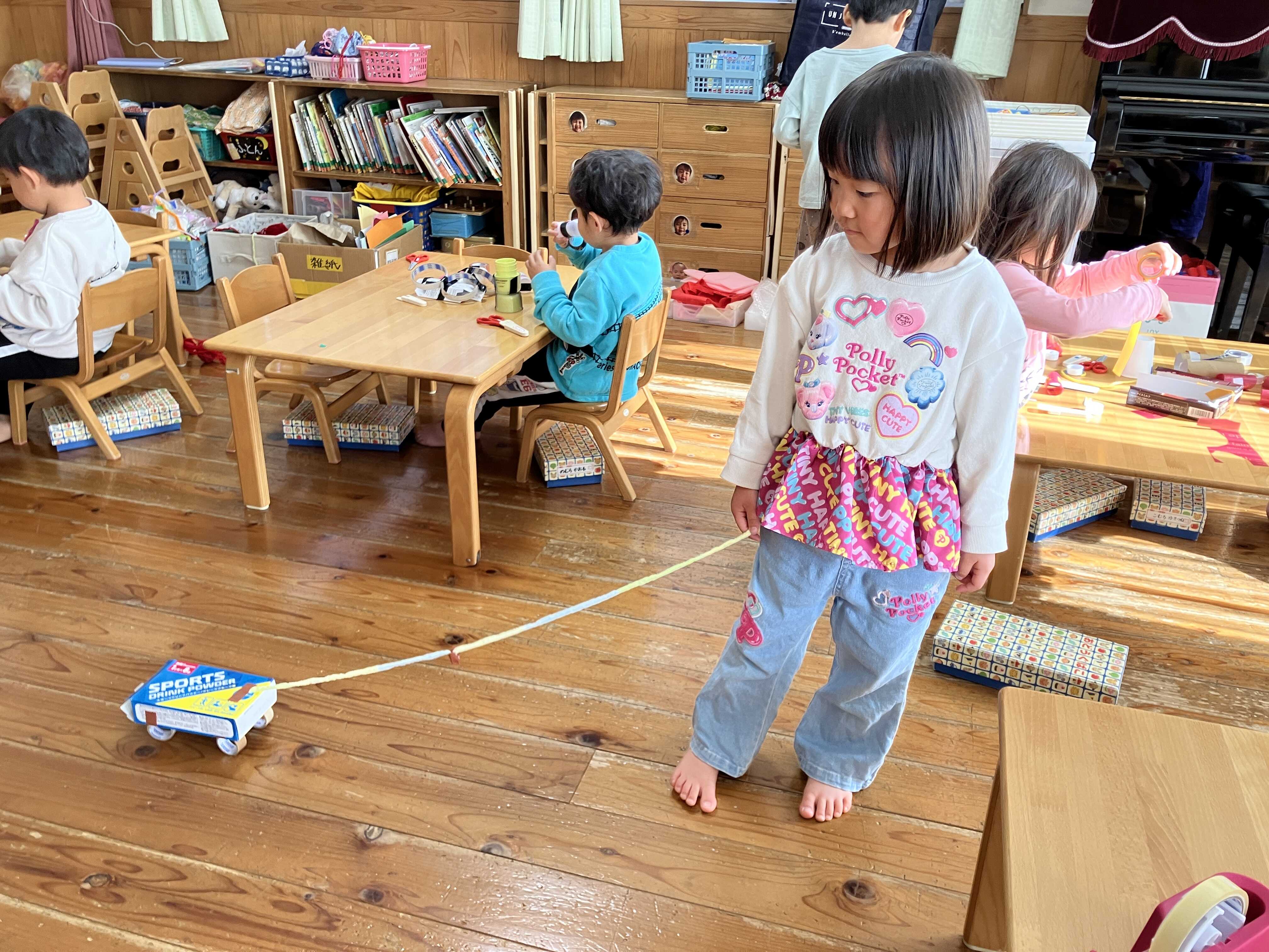 • 3,4歳児さんは工作をしました♬ 「これをここにつけて・・・これはここかなー」