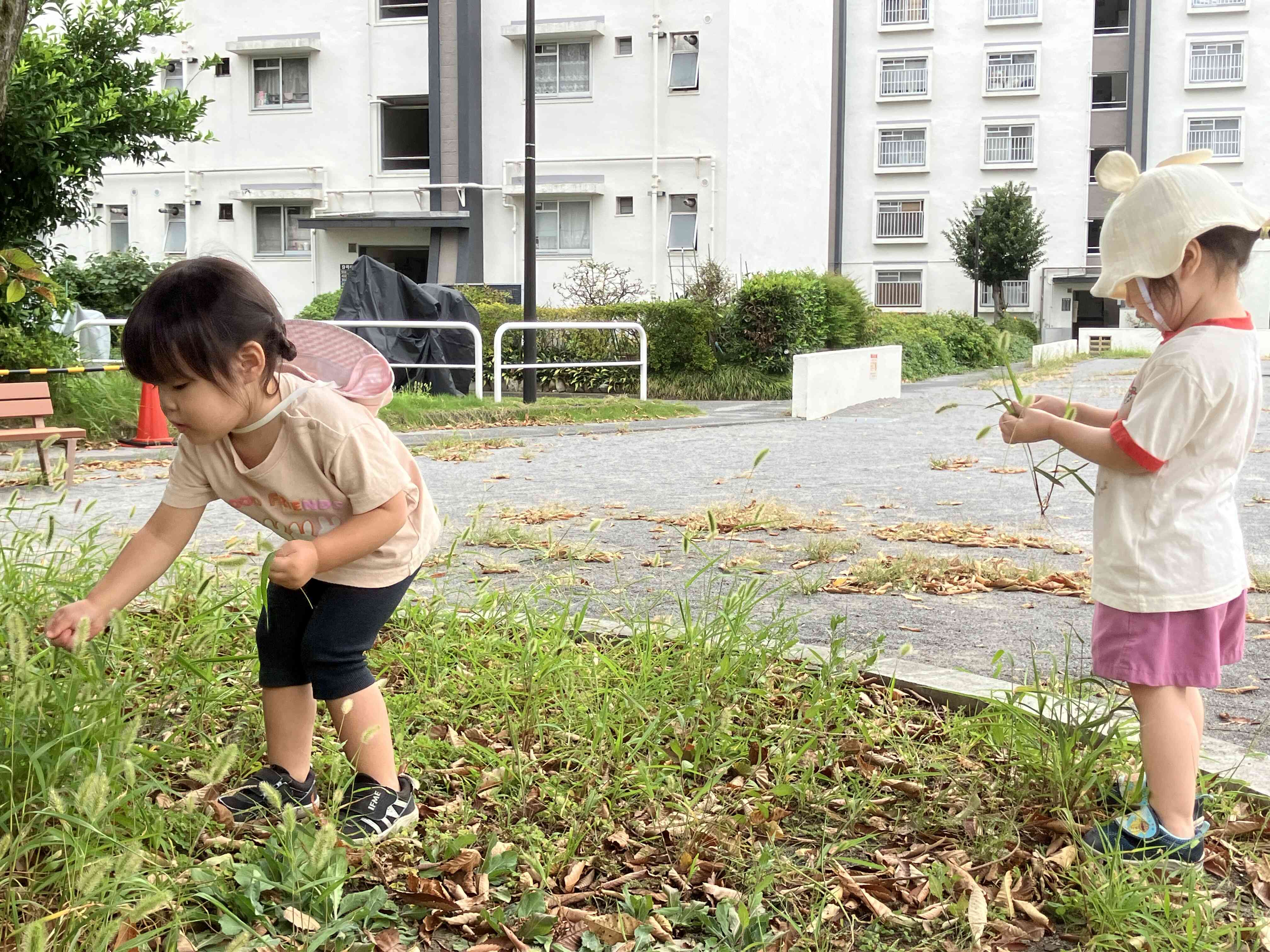 • 植え込みにはネコジャラシがいっぱい!たくさん集めてお土産にしたりお友達をこちょこちょしました。