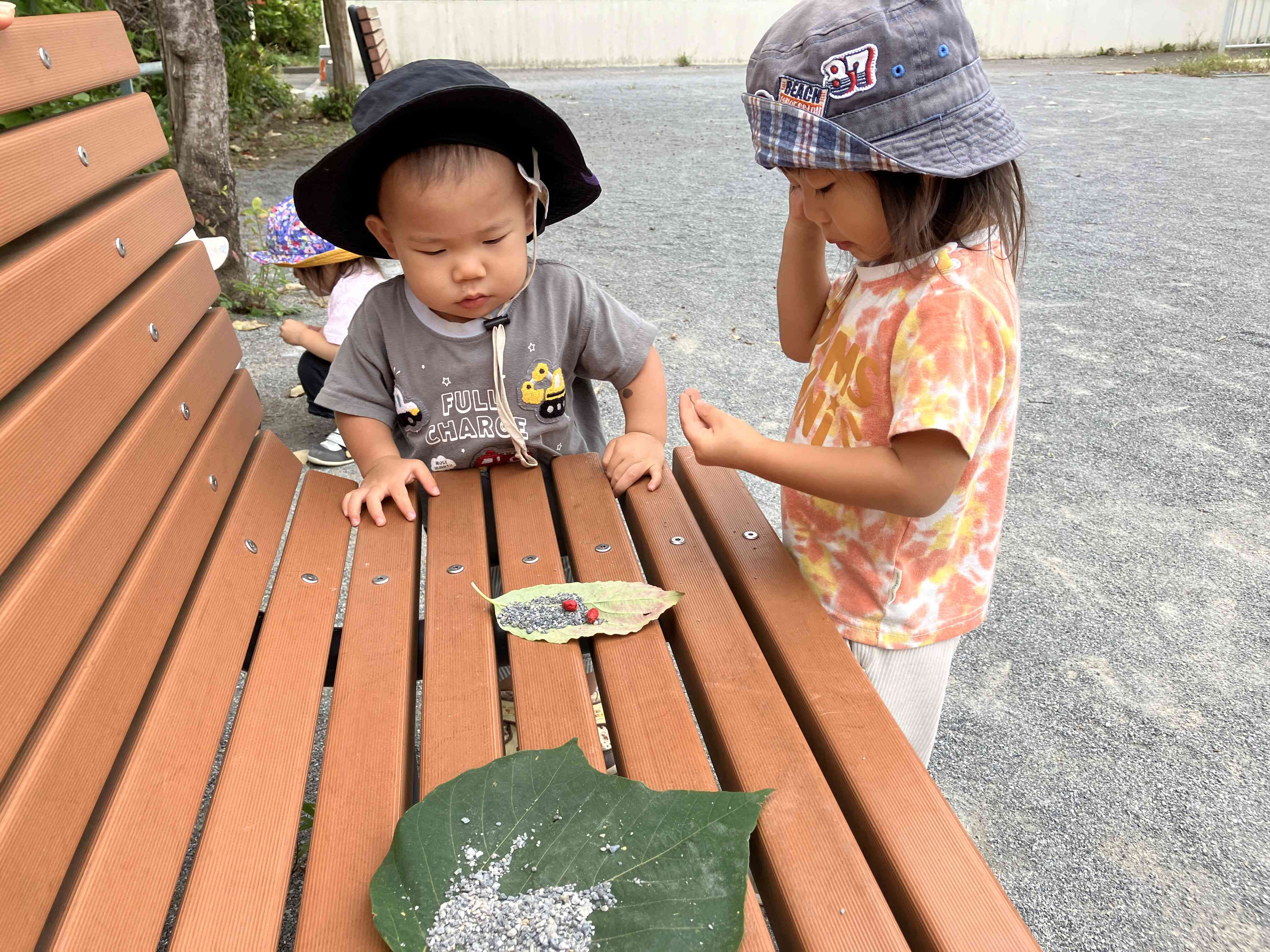 • 「これはぶどうとりんごだよ!」見立て遊びを楽しむ1歳児さん。