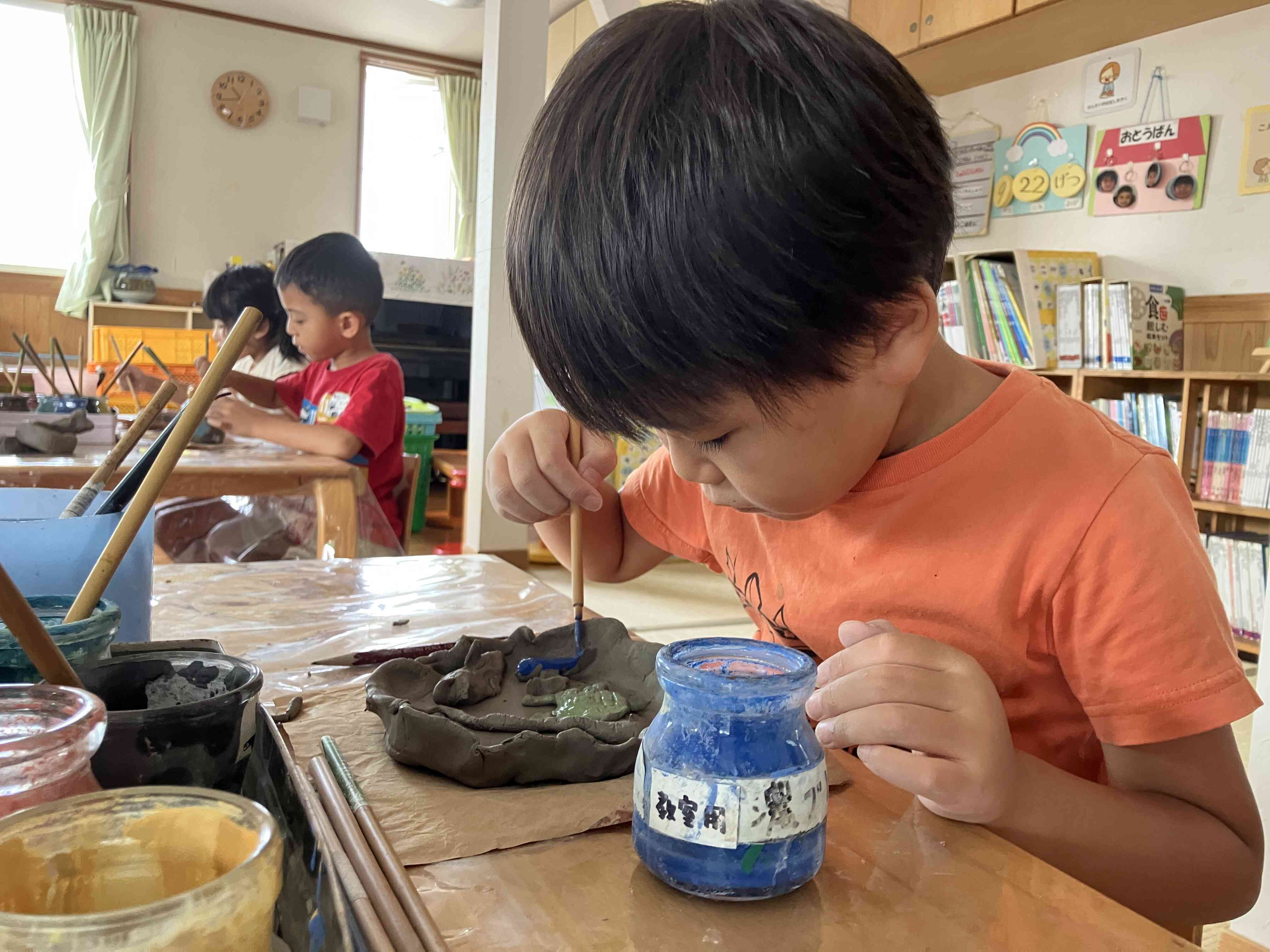 最後まで集中して細部まで塗り上げてました。焼き上がりが楽しみです♪