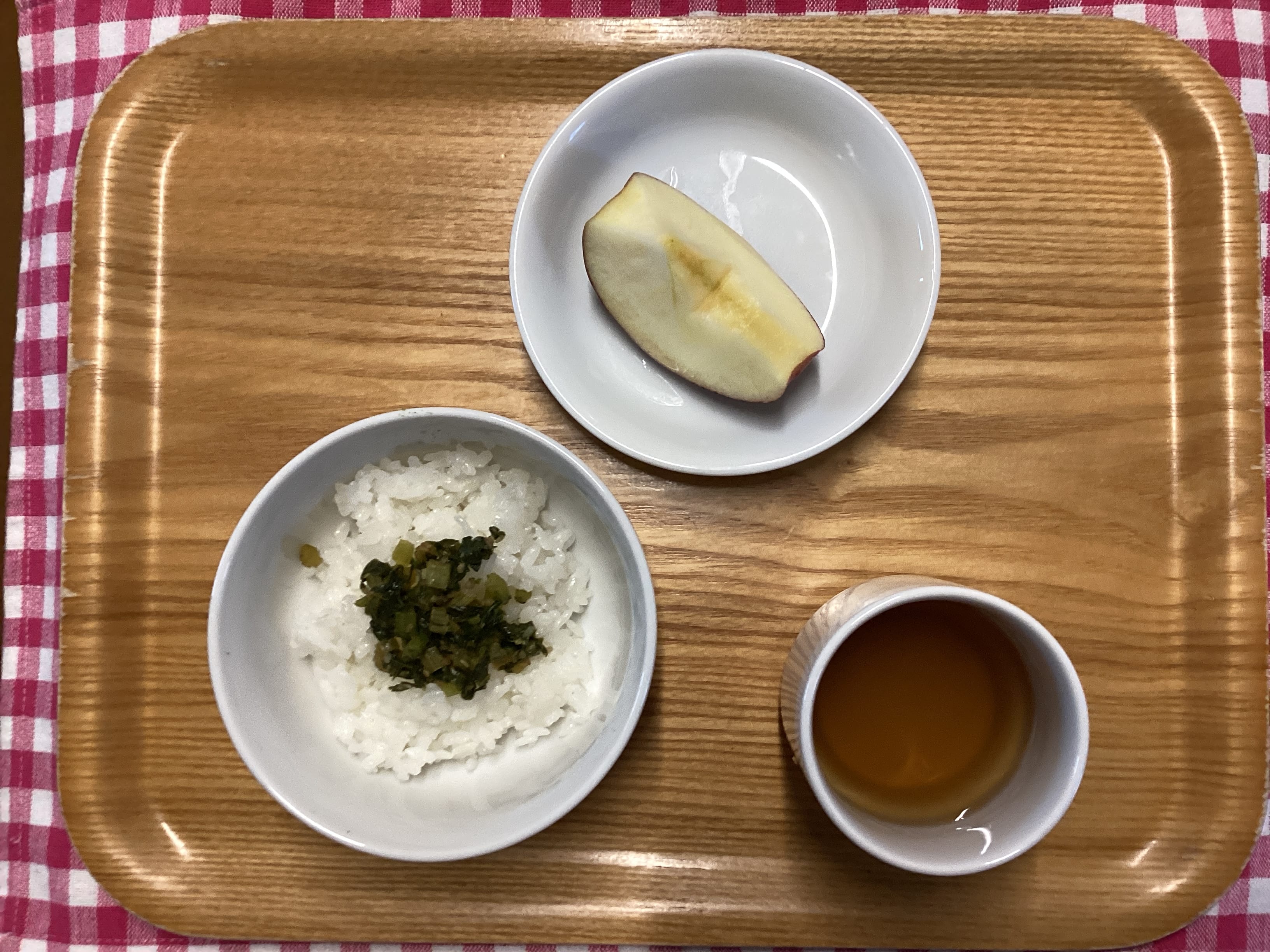 今日の献立 2025/10/01 ■ 給食 食パン(手作りジャム付き) 大葉チーズのミルフィーユカツ にんじんのじゃこ和え グリーンソテー かぶと舞茸のスープ ■ おやつ かぶの葉ふりかけご飯 りんご 麦茶